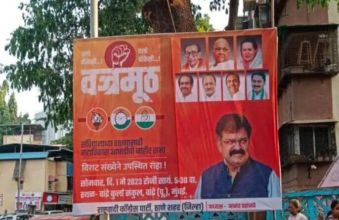 🟥 राष्ट्रवादीची मुख्यमंत्री शिंदेच्या मतदार संघात बॅनरबाजी ; वज्रमुठ सभेला येण्याचे आवाहन..