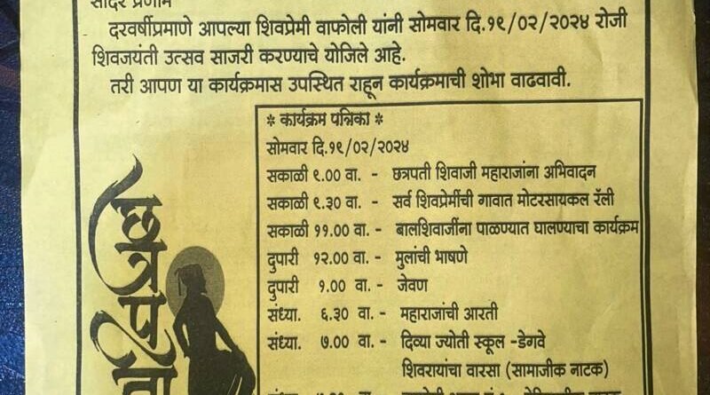 Read More🎥 Kokan Live Breaking News ✍️ प्रतिनिधी : शैलेश गवस 🎴बांदा, दि-१७:- दरवर्षी प्रमाणे शिवप्रेमी वाफोली यांच्या वतीने सोमवार दि.१९/२/२०२४फेब्रुवारी