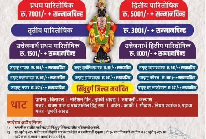 Read Moreपाडलोस गाव व्हॉटस्अॅप ग्रुप आयोजित जिल्हास्तरीय भजन स्पर्धेचे आयोजन करण्यात आले आहे. शनिवार दि.10 ऑगस्ट रोजी संध्या.5 वा.श्री देव