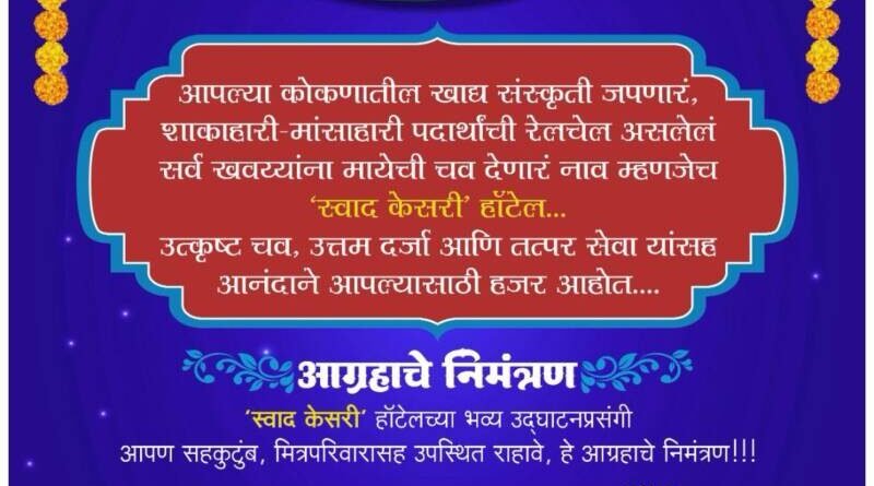 Read More*सांवतवाडीतील केसरी येथे स्वाद केसरी* *हॉटेलचे उद्या १५ जुलै रोजी उद्घाटन* मुंबई, दि. १४ जुलै- कोकणातील खाद्य संस्कृती जपणारं, शाकाहारी-