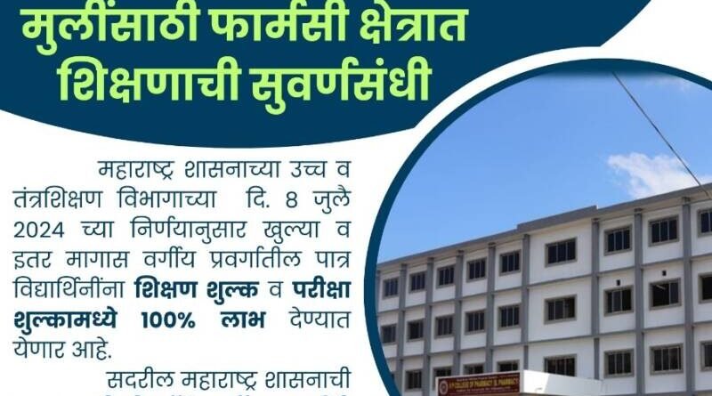 Read More*🛑 *_मुलींसाठी आनंदाची बातमी..* *🛑 भोसले फार्मसी कॉलेजमध्ये डी.फार्मसी कोर्स आता मोफत…* *🎥 KOKAN LIVE BREAKING|| NEWS CHANNEL* *✍️ ब्युरो