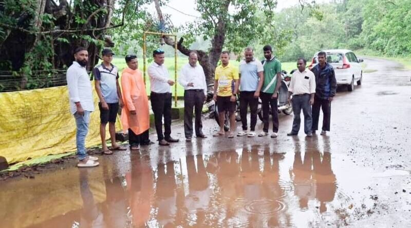 न्हावेली नागझरवाडी ते चौकेकरवाडी येथील संबंधित अधिकाऱ्यांच्या दुर्लक्षामुळे रस्त्याच्या कडेलाच गटार खोदल्यामुळे माती व दगड रस्त्यावर..