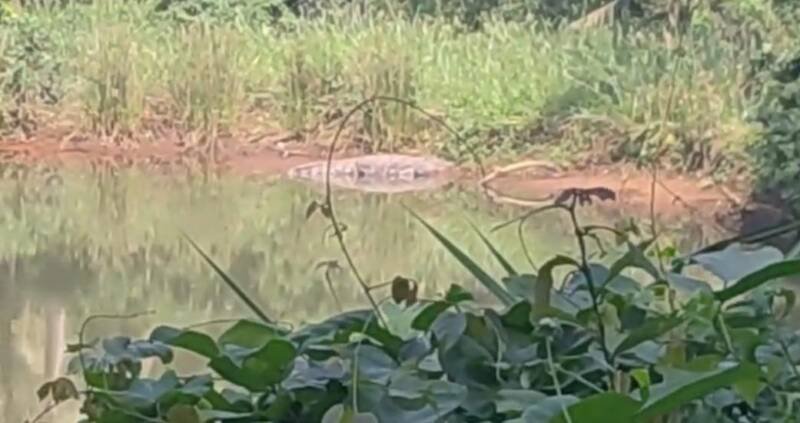 नाणोस येथे शेत तळीत मगरीचे दर्शन