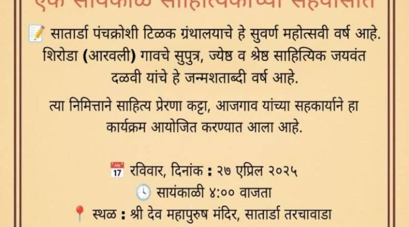 Read More🛑 सातार्डा पंचक्रोशी टिळक ग्रंथालय मंडळ सुवर्ण महोत्सवी वर्षानिमित्त आयोजन 🎥 KOKAN LIVE BREAKING || NEWS CHANNEL ✍️ प्रतिनिधी :