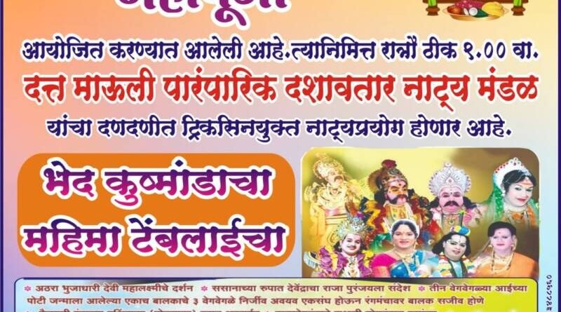 Read More*🛑मळगाव देऊळवाडी येथे २९ रोजी सार्वजनिक सत्यनारायण महापूजेचे आयोजन* *🛑भेद कुष्मांडाचा महिमा टेंबलाईचा’ ट्रिकसिनयुक्त पौराणिक नाट्यप्रयोग* *🎥 KOKAN