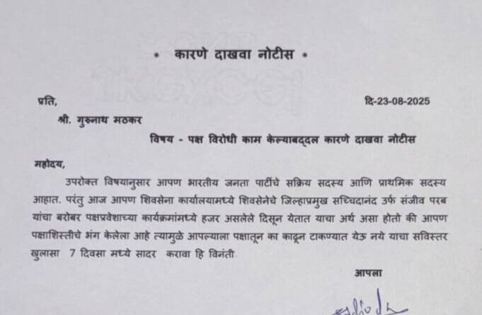 Read More*🛑पक्षविरोधी कारभाराबद्दल भाजपकडून गुरुनाथ मठकर यांना कारणे दाखवा नोटीस.* *🎥 KOKAN LIVE BREAKING ||NEWS CHANNEL* *✍️ ब्युरो न्युज