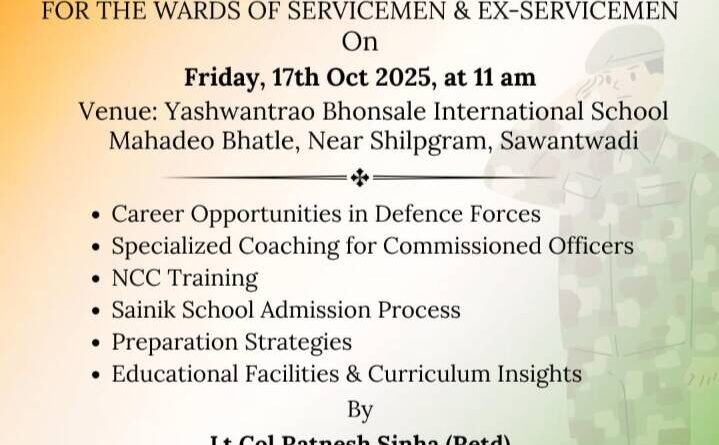 Read More*🛑आजी-माजी सैनिकांच्या पाल्यांसाठी करिअर कौन्सिलिंग कार्यक्रम….* *🛑ले.कर्नल रत्नेश सिन्हा (निवृत्त) करणार मार्गदर्शन….* *🎥 KOKAN LIVE BREAKING ||NEWS CHANNEL*