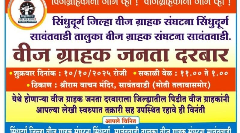 Read More*🛑सावंतवाडीत वीज ग्राहकांसाठी आज जनता दरबार.* *🎥 KOKAN LIVE BREAKING ||NEWS CHANNEL* *✍️ प्रतिनिधी : नितीन गावडे*