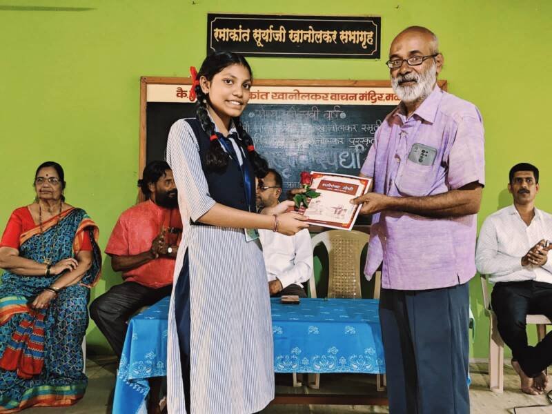 *ЁЯО┤рд╕рд╛рд╡рдВрддрд╡рд╛рдбреА, рджрд┐- реирей:-* рдорд│рдЧрд╛рд╡ рдпреЗрдереАрд▓ рдХреИ. рдЙрджрдп рд░рдорд╛рдХрд╛рдВрдд рдЦрд╛рдиреЛрд▓рдХрд░ рд╡рд╛рдЪрдирд╛рд▓рдпрд╛рддрд░реНрдлреЗ рдЖрдпреЛрдЬрд┐рдд рдХреЗрд▓реЗрд▓реНрдпрд╛ рдорд╛рд▓рддреА рдЦрд╛рдиреЛрд▓рдХрд░ рд╕реНрдореГрддреА рдЬрд┐рд▓реНрд╣рд╛рд╕реНрддрд░реАрдп рд╡рдХреГрддреНрд╡ рдЖрдард╡реА рддреЗ рджрд╣рд╛рд╡реА рдЧрдЯрд╛рдд рдпреЗрдереАрд▓ рд░рд╛рдгреА рдкрд╛рд░реНрд╡рддреА рджреЗрд╡реА рдЖрд░рдкреАрдбреА рд╣рд╛рдпрд╕реНрдХреВрд▓рдЪреА рдЕрд╕реНрдореА рдкреНрд░рд╡реАрдг рдорд╛рдВрдЬрд░реЗрдХрд░ рд╣рд┐рдиреЗ рддреГрддреАрдп рдХреНрд░рдорд╛рдВрдХ рдкрдЯрдХрд╛рд╡рд┐рд▓рд╛.