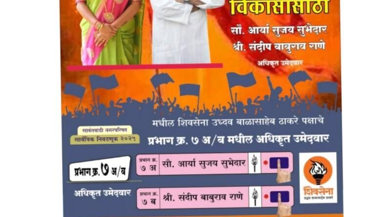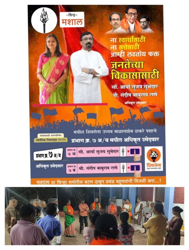 *ЁЯЫСрдкреНрд░рднрд╛рдЧ рдХреНрд░рдорд╛рдВрдХ рен рдордзреНрдпреЗ рдЙрджреНрдзрд╡ рдмрд╛рд│рд╛рд╕рд╛рд╣реЗрдм рдард╛рдХрд░реЗ рд╢рд┐рд╡рд╕реЗрдиреЗрдЪреНрдпрд╛ рдирдЧрд░рд╕реЗрд╡рдХ рдкрджрд╛рдЪреНрдпрд╛ рдЙрдореЗрджрд╡рд╛рд░ рдкреНрд░рдЪрд╛рд░рд╛рдд рд╕реМ. рдЖрд░реНрдпрд╛ рд╕реБрднреЗрджрд╛рд░ рд╡ рд╢реНрд░реА. рд╕рдВрджреАрдк рд░рд╛рдгреЗ рдпрд╛рдВрдЪреА рдкреНрд░рдЪрд╛рд░рд╛рдд рдЖрдШрд╛рдбреА.*