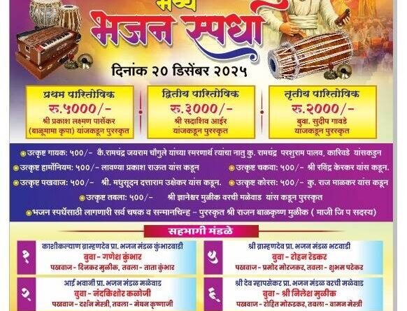 ЁЯЫСрдорд│реЗрд╡рд╛рдб рдпреЗрдереЗ реиреж рдбрд┐рд╕реЗрдВрдмрд░ рд░реЛрдЬреА рднрдЬрди рд╕реНрдкрд░реНрдзреЗрдЪреЗ рдЖрдпреЛрдЬрди.