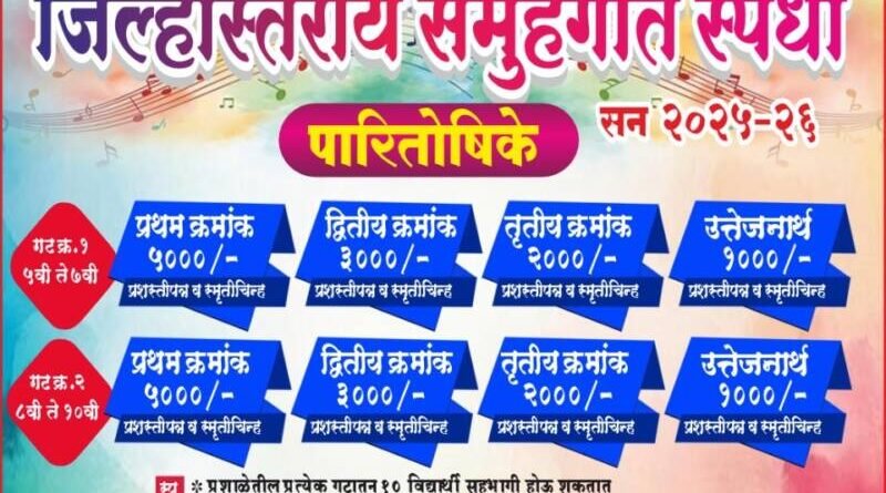 या स्पर्धेसाठी प्रशालेतील प्रत्येक गटातून दहा विद्यार्थी सहभागी होऊ शकतात.गीत देशभक्तीपर असावे .स्पर्धेची वेळ सात मिनिटे असून स्पर्धकांनी वाद्य व वादक स्वतः आणावेत कोणत्याही इलेक्ट्रिक साधनांचा वापर करू नये आयोजकांच्या वतीने स्पर्धकांची भोजनाची व्यवस्था करण्यात येईल.स्पर्धक संघाने वेळेपूर्वी अर्धा तास आपली उपस्थिती नोंदवावी.सदरील स्पर्धा सोमवार दिनांक २९ डिसेंबर रोजी सकाळी दहा वाजता सुरू होईल. स्पर्धेचा निकाल व पारितोषिक वितरण त्याच दिवशी दुपारी चार वाजता मान्यवरांच्या हस्ते करण्यात येणार असून स्पर्धकांनी आपली नावे २५ डिसेंबर पर्यंत स्वतः येऊन किंवा व्हॉट्सअँप वर द्यावित.