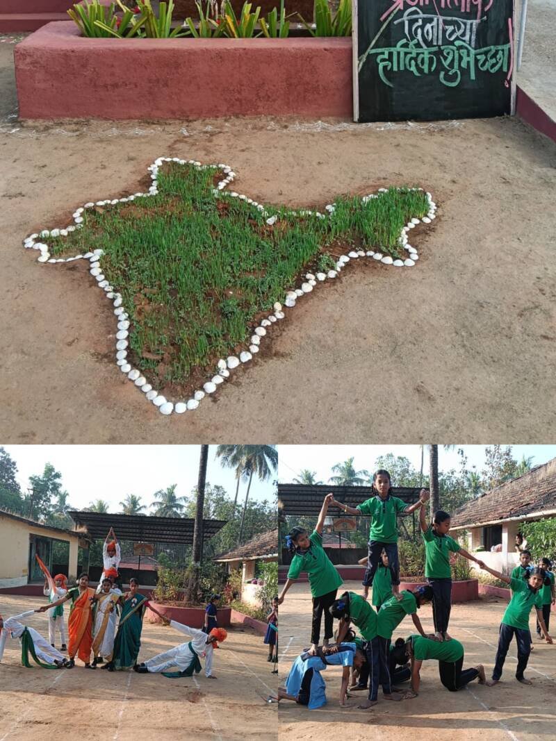 77 рд╡реНрдпрд╛ рдкреНрд░рдЬрд╛рд╕рддреНрддрд╛рдХ рджрд┐рдирд╛рдирд┐рдорд┐рддреНрдд рдЬрд┐рд▓реНрд╣рд╛ рдкрд░рд┐рд╖рдж рдкреВрд░реНрдг рдкреНрд░рд╛рдердорд┐рдХ рд╢рд╛рд│рд╛ рджреЗрд╡рд╕реБ рдпреЗрдереЗ рд╡рд┐рд╡рд┐рдз рдХрд╛рд░реНрдпрдХреНрд░рдорд╛рдВрдЪреЗ рдЖрдпреЛрдЬрди рдХрд░рдгреНрдпрд╛рдд рдЖрд▓реЗ. рдпрд╛ рдХрд╛рд░реНрдпрдХреНрд░рдорд╛рдВрдЪреА рддрдпрд╛рд░реА рдорд╛рдЧреАрд▓ рдмрд▒реНрдпрд╛рдЪ рджрд┐рд╡рд╕рд╛рдВрдкрд╛рд╕реВрди рд╢рд╛рд│реЗрдордзреНрдпреЗ рдШреЗрдгреНрдпрд╛рдд рдпреЗрдд рд╣реЛрддреА, рддреНрдпрд╛рддрд▓рд╛рдЪ рдПрдХ рдкреНрд░рдХрд╛рд░ рдореНрд╣рдгрдЬреЗ рддреГрдгрдзрд╛рдиреНрдпрд╛рдВрдкрд╛рд╕реВрди рд╕рд╛рдХрд╛рд░рд▓реЗрд▓реА рднрд╛рд░рддрдорд╛рддрд╛ . рд╢рд╛рд│реЗрддреАрд▓ рдкрджрд╡реАрдзрд░ рд╢рд┐рдХреНрд╖рд┐рдХрд╛ рд╕реМ рдкреНрд░рдгрд┐рддрд╛ рдорд╛рдВрдбрд╡рдХрд░ рдпрд╛рдВрдЪреНрдпрд╛ рд╕рдВрдХрд▓реНрдкрдиреЗрддреВрди рднрд╛рд░рддрд╛рдЪрд╛ рдирдХрд╛рд╢рд╛ рдХрд╛рдвреВрди рддреНрдпрд╛рдордзреНрдпреЗ рддреГрдгрдзрд╛рдиреНрдп рдкреЗрд░реВрди рднрд╛рд░рдд рдорд╛рддрд╛ рд╕рд╛рдХрд╛рд░рдгреНрдпрд╛рдд рдЖрд▓реА, рд╣реЗ рдЖрдЬрдЪреНрдпрд╛ рджрд┐рд╡рд╕рд╛рдЪреЗ рдЦрд╛рд╕ рдЖрдХрд░реНрд╖рдг рд╣реЛрддреЗ. рддреНрдпрд╛рдЪрдмрд░реЛрдмрд░ рд╢рд╛рд│реЗрдордзреНрдпреЗ рд╡рд┐рд╡рд┐рдз рдкреНрд░рдХрд╛рд░рдЪреЗ рдХрд╛рд░реНрдпрдХреНрд░рдо рджреЗрдЦреАрд▓ рдШреЗрдгреНрдпрд╛рдд рдЖрд▓реЗ. рдЬрд╕реЗ рджреЗрд╢рднрдХреНрддреАрдкрд░ рдЧрд╛рдгреНрдпрд╛рд╡рд░ рд▓реЗрдЭреАрдо рдиреГрддреНрдп ,рд╕рдзреНрдпрд╛ рдЧрд╛рдЬрдд рдЕрд╕рд▓реЗрд▓рд╛ рдорд░рд╛рдареА рдЪрд┐рддреНрд░рдкрдЯ рдХреНрд░рд╛рдВрддреАрдЬреНрдпреЛрддреА рдорд░рд╛рдареА рдорд╛рдзреНрдпрдо рдордзреАрд▓ рд╕реБрдкреНрд░рд╕рд┐рджреНрдз рдЧреАрдд “рд╕реНрд╡рд░реНрдЧрд╛рдд рдЖрдХрд╛рд╢рдЧрдВрдЧрд╛” рдпрд╛ рдЧрд╛рдгреНрдпрд╛рд╡рд░ рдерд╛рд│реА рдХрд╡рд╛рдпрдд рд╡ рд╡рд┐рджреНрдпрд╛рд░реНрдереНрдпрд╛рдВрдЪреЗ рд╡рд┐рд╡рд┐рдз рдорд╛рдирд╡реА рдордиреЛрд▒реНрдпрд╛рдВрдЪреЗ рд╕рдВрдЧреАрддрдордп рдкреНрд░рджрд░реНрд╢рди. рдпрд╛рдордзреНрдпреЗ рд╕рд░реНрд╡рдЪ рд╡рд┐рджреНрдпрд╛рд░реНрдереА рдЗрдпрддреНрддрд╛ рдкрд╣рд┐рд▓реА рддреЗ рд╕рд╛рддрд╡реА рдкрд░реНрдпрдВрддрдЪреЗ рд╕рд╣рднрд╛рдЧреА рдХрд░рдгреНрдпрд╛рдд рдЖрд▓реЗ рд╣реЛрддреЗ, рдореБрд▓реАрдВрдиреА рджреЗрдЦреАрд▓ рд╕реБрдВрджрд░ рдЕрд╕реЗ рдордиреЛрд░реЗ рд╕рд╛рдХрд╛рд░рд▓реЗрд▓реЗ рд╣реЛрддреЗ рд╢рд╛рд│реЗрддреАрд▓ рд╕рд╣рд╛рдпреНрдпрдХ рд╢рд┐рдХреНрд╖рдХ рд╢реНрд░реА рд░рд╛рдКрд│ рд╕рд░, рд╕реМ рдорд╛рдВрдбрд╡рдХрд░ рдореЕрдбрдо рд╡ рдЕрдорд┐рд╖рд╛ рд░рд╛рдКрд│ рдореЕрдбрдо рд╡ рдореБрдЦреНрдпрд╛рдзреНрдпрд╛рдкрдХ рд╢реНрд░реА рдкреНрд░рд╡реАрдг рдард╛рдХреВрд░ рд╕рд░ рдпрд╛рдВрдЪреЗ рдпрд╛рд╕рд╛рдареА рд╕рд╣рдХрд╛рд░реНрдп рд▓рд╛рднрд▓реЗ. рд╕рд░реНрд╡ рдкрд╛рд▓рдХ, рдЧреНрд░рд╛рдорд╕реНрде рд╢рд╛рд│рд╛ рд╡реНрдпрд╡рд╕реНрдерд╛рдкрди рд╕рдорд┐рддреА рдпрд╛рдВрдЪреНрдпрд╛рдХрдбреВрди рддреНрдпрд╛рдВрдЪреЗ рдЦреВрдк рдЦреВрдк рдХреМрддреБрдХ рдХрд░рдгреНрдпрд╛рдд рдЖрд▓реЗ. рдЖрдЬрдЪреНрдпрд╛ рдХрд╛рд░реНрдпрдХреНрд░рдорд╛рд▓рд╛ рдЧрд╛рд╡рдЪреЗ рдкреНрд