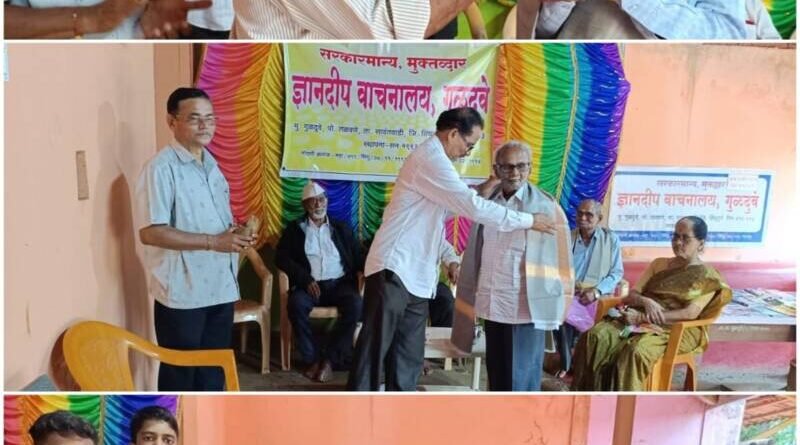 рд╡рд╛рдЪрдирд╛рд▓рдпрд╛рдЪреЗ рд╡рдпреЛрд╡реГрджреНрдз рд░реЛрдЬрд╡рд╛рдЪрдХ рдЕрдирдВрдд рдиреАрд│рдХрдВрда рдзрд░реНрдгреЗ рдпрд╛рдВрдЪрд╛ рд╢рд╛рд▓ рд╡ рд╢реНрд░реАрдлрд│ рджреЗрдКрди рд╕рддреНрдХрд╛рд░ рд╡рд╛рдЪрдирд╛рд▓рдпрд╛рдЪреЗ рдЕрдзреНрдпрдХреНрд╖ рдлрдЯреВ рдирд╛рд░рд╛рдпрдг рдзрд░реНрдгреЗ рдпрд╛рдВрдЪреНрдпрд╛ рд╣рд╕реНрддреЗ рдХрд░рдгреНрдпрд╛рдд рдЖрд▓рд╛.рджреБрд╕рд░реЗ рд╡рдпреЛрд╡реГрджреНрдз рд░реЛрдЬрд╡рд╛рдЪрдХ рд╕реЛрдиреВ рд░рд╛рдЬрд╛рд░рд╛рдо рдзрд░реНрдгреЗ рдпрд╛рдВрдЪрд╛ рд╕рддреНрдХрд╛рд░ рдкреНрд░рдореБрдЦ рдкрд╛рд╣реБрдгреЗ рдмрд╛рд│рдХреГрд╖реНрдг рд░рд╛рдгреЗ рдпрд╛рдВрдЪреНрдпрд╛ рд╣рд╕реНрддреЗ рдХрд░рдгреНрдпрд╛рдд рдЖрд▓рд╛.