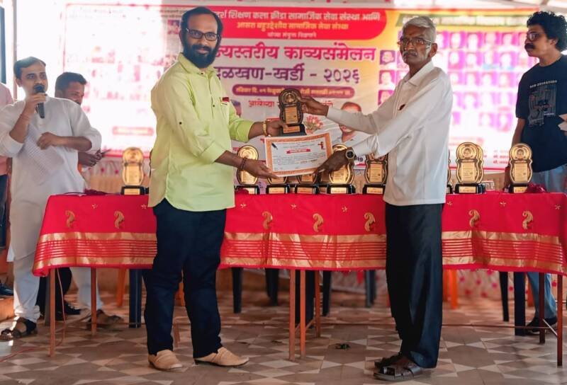 рд╕рд╛рд╣рд┐рддреНрдп рдХреНрд╖реЗрддреНрд░рд╛рддреАрд▓ рдпреЛрдЧрджрд╛рди рд╡ рдЙрддреНрдХреГрд╖реНрдЯ рд╕рд╛рджрд░реАрдХрд░рдгрд╛рдмрджреНрджрд▓ рдЖрдпреЛрдЬрдХ рд╕рдВрд╕реНрдереЗрдЪреНрдпрд╛ рд╡рддреАрдиреЗ рд╢реНрд░реА. рд╕рдВрддреЛрд╖ рджрддреНрддрд╛рд░рд╛рдо рдЪрд┐рд▓реЗ рдпрд╛рдВрдирд╛ рд╕рдиреНрдорд╛рдирдкрддреНрд░ рд╡ рд╕рдиреНрдорд╛рдирдЪрд┐рдиреНрд╣ рджреЗрдКрди рдЧреМрд░рд╡рд┐рдгреНрдпрд╛рдд рдЖрд▓реЗ. рдпрд╛рд╡реЗрд│реА рдЗрддрд░рд╣реА рдЕрдиреЗрдХ рдирд╡реЛрджрд┐рдд рд╡ рдЕрдиреБрднрд╡реА рдХрд╡реАрдВрдирд╛ рд╕рдиреНрдорд╛рдирд┐рдд рдХрд░рдгреНрдпрд╛рдд рдЖрд▓реЗ.