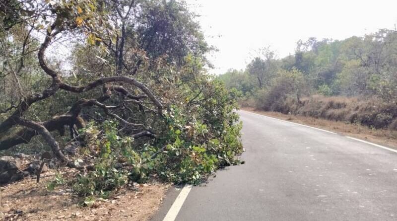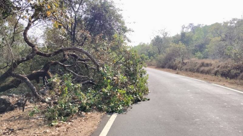 рд╣реЗ рдХрд╛рдЬреВрдЪреЗ рдкрдбрд▓реЗрд▓реЗ рднрд▓реЗ рдореЛрдареЗ рдЭрд╛рдб рдЖрдгрд┐ рд░рд╕реНрддреНрдпрд╛рдЪреНрдпрд╛ рд╕рдореЛрд░ рдореЛрдареЗ рд╡рд│рдг рдЕрд╕рд▓реНрдпрд╛рдиреЗ рд╡рд╛рд╣рдирдЪрд╛рд▓рдХрд╛рдВрдЪреА рдзрд╛рдВрджрд▓ рдЙрдбрдд рдЖрд╣реЗ.рдЕрдЪрд╛рдирдХ рд╕рдореЛрд░реВрди рд╡рд╛рд╣рди рдЖрд▓реНрдпрд╛рд╕ рддреЗ рджрд┐рд╕рдд рдирд╕рд▓реНрдпрд╛рдореБрд│реЗ рдЕрдкрдШрд╛рддрд╛рдЪреА рд╢рдХреНрдпрддрд╛ рдирд┐рд░реНрдорд╛рдг рдЭрд╛рд▓реА рдЖрд╣реЗ.рддреНрдпрд╛рдореБрд│реЗ рд▓рд╡рдХрд░рд╛рдд рд▓рд╡рдХрд░ рд╣реЗ рдЭрд╛рдб рдмрд╛рдЬреВрд▓рд╛ рдХрд░рдгреНрдпрд╛рдЪреА рдорд╛рдЧрдгреА рд╡рд╛рд╣рдирдЪрд╛рд▓рдХ рдХрд░рдд рдЖрд╣реЗрдд.