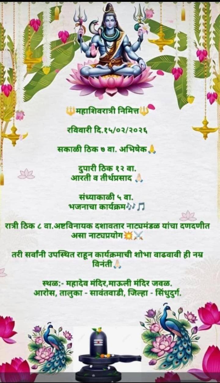 *ЁЯЫСрдорд╣рд╛рд╢рд┐рд╡рд░рд╛рддреНрд░реА рдирд┐рдорд┐рддреНрдд рдЖрд░реЛрд╕ рдпреЗрдереЗ резрел рд░реЛрдЬреА рдХрд╛рд░реНрдпрдХреНрд░рдо.*
