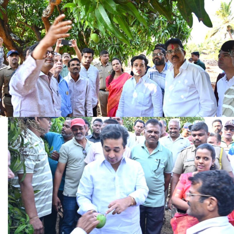 рдкрд╛рд▓рдХрдордВрддреНрд░реА рдирд┐рддреЗрд╢ рд░рд╛рдгреЗ рдпрд╛рдВрдиреА рдЖрдВрдмрд╛ рдмрд╛рдЧрд╛рдВрдЪреА рдкреНрд░рддреНрдпрдХреНрд╖ рдкрд╛рд╣рдгреА рдХрд░рдд рд╢реЗрддрдХрд▒реНрдпрд╛рдВрдЪреНрдпрд╛ рдЕрдбрдЪрдгреА рдЬрд╛рдгреВрди рдШреЗрддрд▓реНрдпрд╛. рдпрд╛рд╡реЗрд│реА рд╢рд╛рд╕рди рдХрд╛рдпрдо рд╢реЗрддрдХрд▒реНрдпрд╛рдВрдЪреНрдпрд╛ рдкрд╛рдареАрд╢реА рдЕрд╕реВрди рдиреБрдХрд╕рд╛рдирдЧреНрд░рд╕реНрдд рдЖрдВрдмрд╛ рдмрд╛рдЧрд╛рдпрддрджрд╛рд░рд╛рдВрдирд╛ рдорджрдд рдорд┐рд│рд╡реВрди рджреЗрдгреНрдпрд╛рд╕рд╛рдареА рд╢рд╛рд╕рди рдкрд╛рддрд│реАрд╡рд░ рдкреНрд░рдпрддреНрди рд╕реБрд░реВ рдЕрд╕рд▓реНрдпрд╛рдЪреЗ рддреНрдпрд╛рдВрдиреА рд╕рд╛рдВрдЧрд┐рддрд▓реЗ.