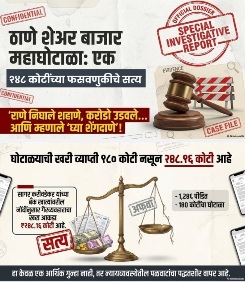 *ЁЯЫСрдард╛рдгреЗ рд╢реЗрдЕрд░ рдмрд╛рдЬрд╛рд░ рдорд╣рд╛рдШреЛрдЯрд╛рд│рд╛ : резреореж рдирд╡реНрд╣реЗ рддрд░ рддрдмреНрдмрд▓ реирекрео рдХреЛрдЯреАрдВрдЪрд╛ рдШреЛрдЯрд╛рд│рд╛!*