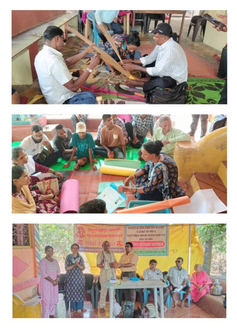 рдкреНрд░рд╢рд┐рдХреНрд╖рдгрд╛рдЪреНрдпрд╛ рддрд┐рд╕рд▒реНрдпрд╛ рджрд┐рд╡рд╢реА рджрд┐рд╡реНрдпрд╛рдВрдЧ рдмрд╛рдВрдзрд╡рд╛рдВрдирд╛ рдХрд░рд╡рдВрдЯреА рдкрд╛рд╕реВрди рд╡реЗрдЧрд╡реЗрдЧрд│реНрдпрд╛ рдкреНрд░рдХрд╛рд░рдЪреЗ рд╡рд╕реНрддреВ рд╢рд┐рдХрд╡рдгреНрдпрд╛рдд рдЖрд▓реЗ. рддрд╕реЗрдЪ рдХрд╛рдЧрджрд╛рдкрд╛рд╕реВрди рдХрдВрджреАрд▓ рд╢рд┐рдХрд╡рдгреНрдпрд╛рдд рдЖрд▓реЗ. рддреНрдпрд╛рдЪрдкреНрд░рдорд╛рдгреЗ рд╕рд╛рдИрдХреГрдкрд╛ рд╕рдВрд╕реНрдереЗрдЪреЗ рд╕рднрд╛рд╕рдж рдЕрдВрдз рджрд┐рд╡реНрдпрд╛рдВрдЧ рдмрд╛рдВрдзрд╡ рд╡рд┐рдЬрдп рдХрджрдо рдпрд╛рдВрдиреА рдЭрд╛рдбреВ рдмрдирд╡рд╛рдпрд▓рд╛ рд╢рд┐рдХрд╡рд▓реА. рд╡ рджрд┐рд╡реНрдпрд╛рдВрдЧ рдмрд╛рдВрдзрд╡рд╛рдВрдиреА рд╣реЗ рдкреНрд░рд╢рд┐рдХреНрд╖рдг рдЦреЗрд│реАрдореЗрд│реАрдиреЗ рдЬрддрди рдХреЗрд▓реЗ рд╡ рдкрд╛рд░ рдкрд╛рдбрд▓реЗ.