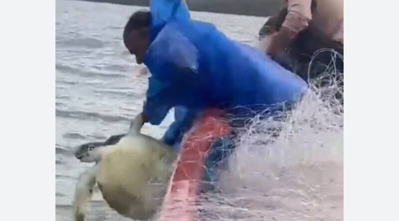 🛑’ग्रीन सी टर्टल’ची जाळ्यातून सुटका.