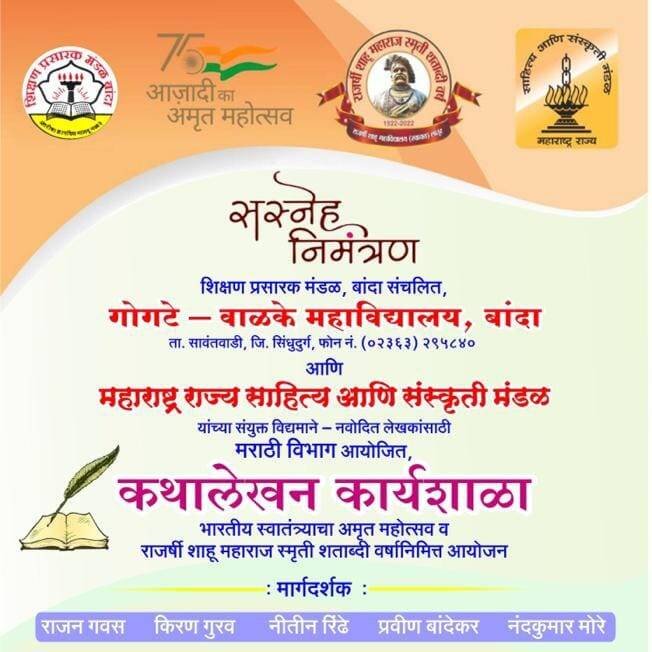 *ЁЯО┤рд╕рд╛рд╡рдВрддрд╡рд╛рдбреА, рджрд┐-реирел:-* рд╢рд┐рдХреНрд╖рдг рдкреНрд░рд╕рд╛рд░рдХ рдордВрдбрд│,рдмрд╛рдВрджрд╛ рд░рд╛рд╡рд╕рд╛рд╣реЗрдм рдЧреЛрдЧрдЯреЗ рдХреЙрд▓реЗрдЬ рдСрдл рдХреЙрдорд░реНрд╕,рдЕрдБрдб рд╢реНрд░реАрдорддреА рд╕рд░рд╕реНрд╡рддреАрдмрд╛рдИ рдЧрдгрд╢реЗрдЯ рд╡рд╛рд│рдХреЗ рдХреЙрд▓реЗрдЬ рдСрдл рдЖрд░реНрдЯрд╕реН,рдмрд╛рдВрджрд╛ рддрд╛рд▓реБрдХрд╛ рд╕рд╛рд╡рдВрддрд╡рд╛рдбреА, рдЬрд┐рд▓реНрд╣рд╛ рд╕рд┐рдВрдзреБрджреБрд░реНрдЧ рддрд░реНрдлреЗ рдорд╣рд╛рд╡рд┐рджреНрдпрд╛рд▓рдпрд╛рдЪрд╛ рд╕рди реирежреиреи-реирей рдпрд╛ рд╢реИрдХреНрд╖рдгрд┐рдХ рд╡рд░реНрд╖рд╛рдЪрд╛ рд╡рд╛рд░реНрд╖рд┐рдХ рдкрд╛рд░рд┐рддреАрд╖рд┐рдХ рд╡рд┐рддрд░рдг рд╕рдорд╛рд░рдВрдн рдЖрдпреЛрдЬрд┐рдд рдХрд░рдгреНрдпрд╛рдд рдЖрд▓рд╛ рдЖрд╣реЗ. рд╣рд╛ рд╕рдорд╛рд░рдВрдн рдордВрдЧрд│рд╡рд╛рд░ рджрд┐рдирд╛рдВрдХ 31 рдЬрд╛рдиреЗрд╡рд╛рд░реА 2023 рд░реЛрдЬреА рд╕рдХрд╛рд│реА 10.00 рд╡рд╛рдЬрддрд╛ рд╕рдВрдкрдиреНрди рд╣реЛрдгрд╛рд░ рдЖрд╣реЗ. рдпрд╛ рдХрд╛рд░реНрдпрдХреНрд░рдорд╛рд▓рд╛ рдкреНрд░рдореБрдЦ рдкрд╛рд╣реБрдгреЗ рдореНрд╣рдгреВрди рд╕рд╛рд╣рд┐рддреНрдп рдЕрдХрд╛рджрдореА рдкреБрд░рд╕реНрдХрд╛рд░ рд╡рд┐рдЬреЗрддреЗ рд▓реЗрдЦрдХ рдкреНрд░рд╡реАрдг рдмрд╛рдВрджреЗрдХрд░,рд╢рд┐рдХреНрд╖рдг рдкреНрд░рд╕рд╛рд░рдХ рдордВрдбрд│, рдмрд╛рдВрджрд╛рдЪреЗ рдЕрдзреНрдпрдХреНрд╖ рдбреА. рдмреА. рд╡рд╛рд░рдВрдЧ,рд╢рд┐рдХреНрд╖рдг рдкреНрд░рд╕рд╛рд░рдХ рдордВрдбрд│, рдмрд╛рдВрджрд╛рдЪреЗ рдЙрдкрд╛рдзреНрдпрдХреНрд╖