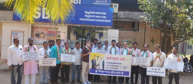अदानी समूहाने केलेल्या आर्थिक घोटाळ्याच्या विरोधात तसेच अदानी समूहाला पाठीशी घालणाऱ्या केंद्र शासनाच्या कार्यपद्धतीचा निषेध करण्यासाठी आज सिंधुदुर्ग जिल्हा काँग्रेस कमिटीच्या वतीने एलआयसी व स्टेट बँकेच्या शाखेसमोर तीव्र निदर्शने केली.