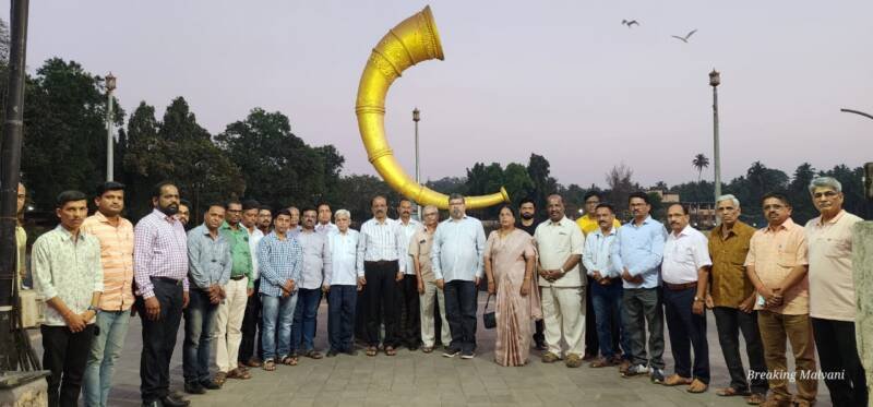 पत्रकार शशिकांत वारीसे यांना श्रद्धांजली वाहण्यासाठी केशवसुत कट्टावर जमलेले नागरिक, पत्रकार