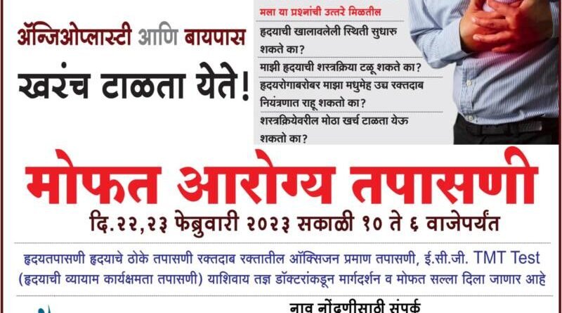 рдЕтАНреЕрдиреНрдЬрд┐рдУрдкреНрд▓рд╛рд╕реНрдЯреА рдЖрдгрд┐ рдмрд╛рдпрдкрд╛рд╕ рдЦрд░рдВрдЪ рдЯрд╛рд│рддрд╛ рдпреЗрддреЗ рдХрд╛ ? рд╣реГрджрдпрд╛рдЪреА рдЦрд╛рд▓рд╛рд╡рд▓реЗрд▓реА рд╕реНрдерд┐рддреА рд╕реБрдзрд╛рд░реВ рд╢рдХрддреЗ рдХрд╛? рд╣реГрджрдпрд╛рдЪреА рд╢рд╕реНрддреНрд░рдХреНрд░рд┐рдпрд╛ рдЯрд│реВ рд╢рдХрддреЗ рдХрд╛ ? рд╣реГрджрдпрд░реЛрдЧрд╛рдмрд░реЛрдмрд░ рдорд╛рдЭрд╛ рдордзреБрдореЗрд╣, рдЙрдЪреНрдЪрд░рдХреНрддрджрд╛рдм рдирд┐рдпрдВрддреНрд░рдгрд╛рдд рд░рд╛рд╣реВ рд╢рдХрддреЛ рдХрд╛? рд╢рд╕реНрддреНрд░рдХреНрд░рд┐рдпреЗрд╡рд░реАрд▓ рдореЛрдард╛ рдЦрд░реНрдЪ рдЯрд╛рд│рддрд╛ рдпреЗрдИрд▓ рдХрд╛ ? рдпрд╛ рдЖрдкрд▓реНрдпрд╛ рд╕рд░реНрд╡ рдкреНрд░рд╢реНрдирд╛рдВрдЪреА рдЙрддреНрддрд░реЗ рдпрд╛ рд╢рд┐рдмрд┐рд░рд╛рдд рднреЗрдЯрдгрд╛рд░ рдЖрд╣реЗрдд.