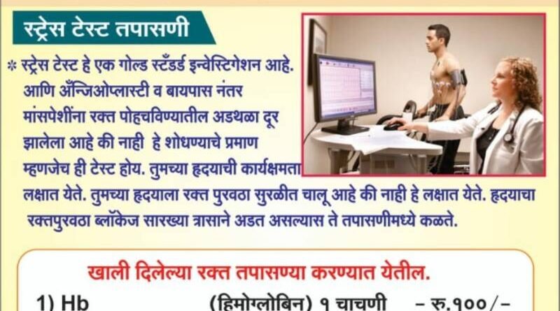 तीन हजाराची स्ट्रेस टेस्ट व रक्त तपासणी फक्त बाराशे रुपयात
