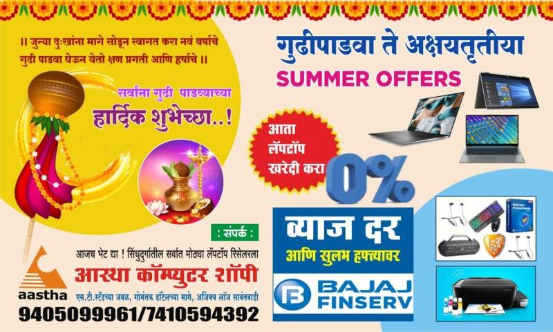 🔥 *सिंधुदुर्गातील एकमेव अधिकृत Multi Brand कॉम्प्युटर विक्रेते 🔺AASTHA COMPUTER SHOPPEE सावंतवाडी यांच्याकडून 👉🏼गुढी पाडवा 20 march ते अक्षय्य तृतीया 25 april दरम्यान केलेल्या लॅपटॉप खरेदी वर भरघोस ऑफर्स*
