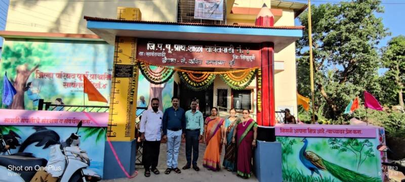*🎴सावंतवाडी, दि-०२:-* जिल्हा परिषद पूर्ण प्राथमिक शाळा सावंतवाडी नंबर 4 च्या उपक्रमशील शिक्षिका श्रीमती कविता कमलाकर धुरी यांजकडून शाळेस सुंदर, भव्य व आकर्षक प्रवेशद्वार आणि शाळा व्यवस्थापन समिती अध्यक्ष श्री संतोष तळवणेकर यांजकडून लोखंडी गेट प्रदान