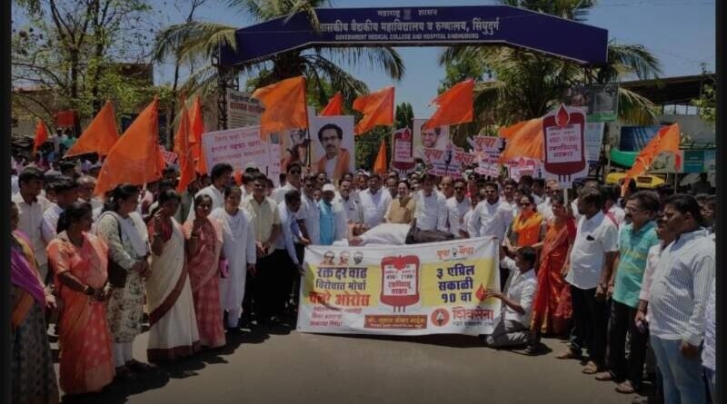 🟥 रक्त दरवाढ विरोधात युवासेना जिल्हाप्रमुख सुशांत नाईक यांच्या नेतृत्वाखाली सिंधुदुर्गनगरी येथे मोर्चा आणि घंटानाद आंदोलन..