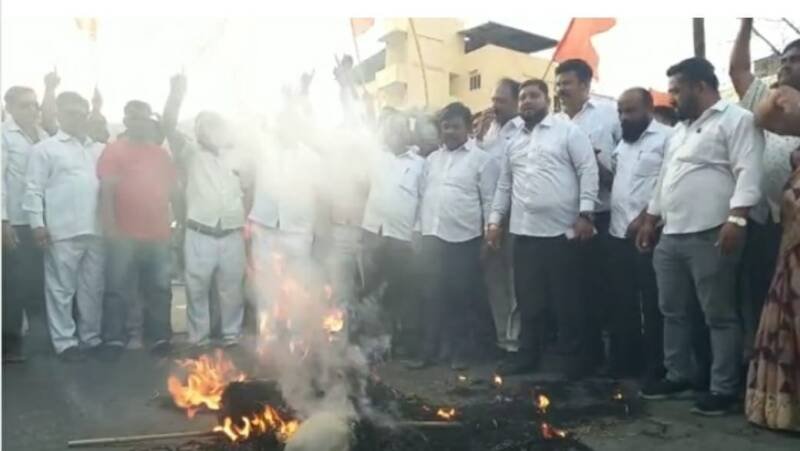 *🎴ठाणे, दि-०४:-* ठाकरे गटाचे खासदार अरविंद सावंत यांनी संभाजी नगर येथे पार पडलेल्या महाविकास आघाडीच्या वज्रमुठ सभेमध्ये मुख्यमंत्री एकनाथ शिंदे यांचा रिक्षावाला उल्लेख करत महाविकास आघाडीचे नेते रिक्षावाल्यांच्या हाताखाली काम करणार का? असं बेताल वक्तव्य केले. या वक्तव्यानंतर संपुर्ण महाराष्ट्रात शिवसैनिक आक्रमक झाले असून ठाण्यातील मा. नगरसेवक एकनाथ भोईर व रिक्षाचालक व शिवसैनिकांनी रस्त्यावर उतरत जोरदार घोषणाबाजी करत निषेध नोंदवला आहे. यावेळी खासदार अरविंद सांवत यांचा प्रतिकात्मक पुतळा जाळत शिवसैनिक आक्रमक झाले आहेत.