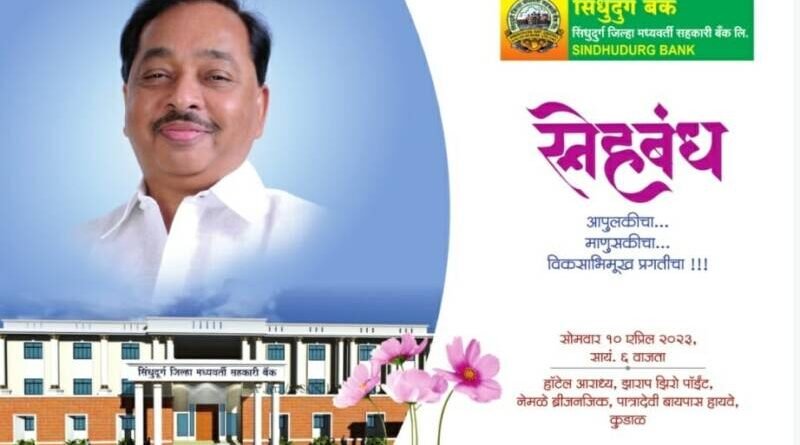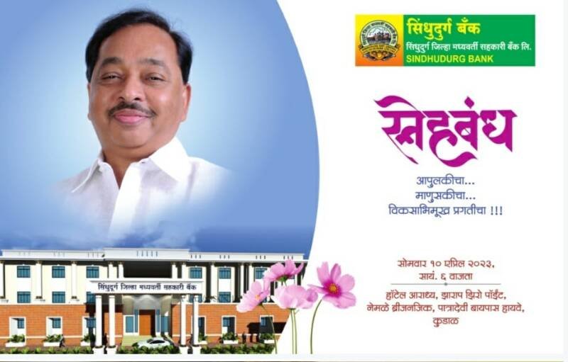 *🎴सिंधुदुर्गनगरी, दि-०८:-*- खासदार नारायण राणे ,सूक्ष्म लघु व मध्यम उद्योग मंत्री भारत सरकार यांच्या ७१ व्या वाढदिवसाच्या औचित्य साधुन सिंधुदुर्ग जिल्हा बँकेच्या वतीने “स्नेहबंध” कार्यक्रमाचे आयोजन त्यांच्या उपस्थितीत सोमवार दिनांक १० एप्रिल २०२३ रोजी सायंकाळी ६.००वाजता करण्यात आले आहे. वाढदिवसाचे औचित्य साधून सिंधुदुर्ग जिल्हा बँकेची वेबसाईट, कॉन्टॅक्टलेस कार्ड व मायक्रो ए.टी.एम चे उदघाटन सोहळा तसेच बँकेच्या आर्थिक वर्षात उल्लेखनीय काम केलेले अधिकारी कर्मचारी यांचा गौरव खा. नारायणराव राणे साहेब यांच्या शुभहस्ते होणार आहे.