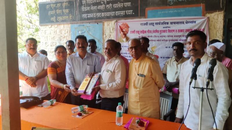 рд╢рд╛рд╣реВ рд╕рд╛рд╣рд┐рддреНрдп рдЧреМрд░рд╡ рдкреБрд░рд╕реНрдХрд╛рд░ рд╡рд┐рддрд░рдг рд╕реЛрд╣рд│реНрдпрд╛рдЪреЗ рдЕрдзреНрдпрдХреНрд╖ рд╢рд╛рд╣реБрд╡рд╛рдбреА рддрд╛рд▓реБрдХреНрдпрд╛рддреАрд▓ рдорд╛рдЬреА рдЖрдорджрд╛рд░ рдмрд╛рдмрд╛рд╕рд╛рд╣реЗрдм рдкрд╛рдЯреАрд▓ рд╕рд░реВрдбрдХрд░ рд╣реЗ рд╣реЛрддреЗ,рддрд░ рд╡реНрдпрд╛рд╕рдкреАрдард╛рд╡рд░ рдЬрд┐рд▓реНрд╣рд╛ рдкрд░рд┐рд╖рдж рд╕рджрд╕реНрдп рд╡рд┐рдЬрдп рдмреЛрд░рдЧреЗ,рд░рд╛рдЬрд░реНрд╖реА рд╢рд╛рд╣реВ рд╡рд╛рдЪрдирд╛рд▓рдпрд╛рдЪреЗ рдЕрдзреНрдпрдХреНрд╖ рдЪрдВрджреНрд░рдХрд╛рдВрдд рд░реЗрдбреЗрдХрд░, рдЧреАрддрд╛рдВрдЬрд▓реА рдХрд╛рдЬрд░реЗрдХрд░, рд╕рд░рдкрдВрдЪ рд╢реАрддрд▓ рдШреЛрд▓рдк,рд▓реЗрдЦрдХ рдЙрдореЗрд╢ рд╕реВрд░реНрдпрд╡рдВрд╢реА рд╣реЗ рдЙрдкрд╕реНрдерд┐рдд рд╣реЛрддреЗ. рдХрд╛рдЬрд░реЗрдХрд░ рдпрд╛рдВрдирд╛ рдорд┐рд│рд╛рд▓реЗрд▓реНрдпрд╛ рдпрд╛ рд╕рдиреНрдорд╛рдирд╛рдмрджреНрджрд▓ рд╢рд┐рдХреНрд╖рдг рдкреНрд░рд╕рд╛рд░рдХ рдордВрдбрд│ рдмрд╛рдВрджрд╛рдЪреЗ рдЕрдзреНрдпрдХреНрд╖ рд╢реНрд░реА.рдбреА. рдмреА.рд╡рд╛рд░рдВрдЧ, рдЦрдЬрд┐рдирджрд╛рд░ рдЯреА. рдПрди.рд╢реЗрдЯрдХрд░, рд╕рдЪрд┐рд╡ рдПрд╕. рдЖрд░.рд╕рд╛рд╡рдВрдд, рдорд╣рд╛рд╡рд┐рджреНрдпрд╛рд▓рдпрд╛рдЪреЗ рдкреНрд░рд╛рдзреНрдпрд╛рдкрдХ, рд╢рд┐рдХреНрд╖рдХреЗрддрд░ рдХрд░реНрдордЪрд╛рд░реА рдЖрдгрд┐ рдорд┐рддреНрд░рдкрд░рд┐рд╡рд╛рд░ рдпрд╛рдВрдиреА рдЕрднрд┐рдирдВрджрди рдХреЗрд▓реЗ рдЖрд╣реЗ.