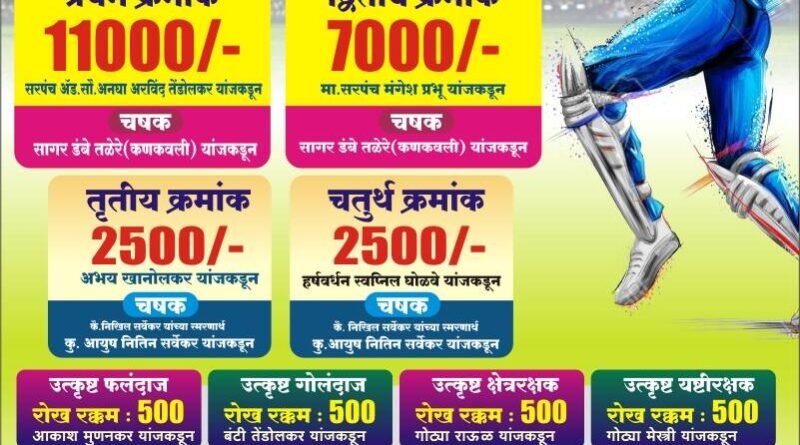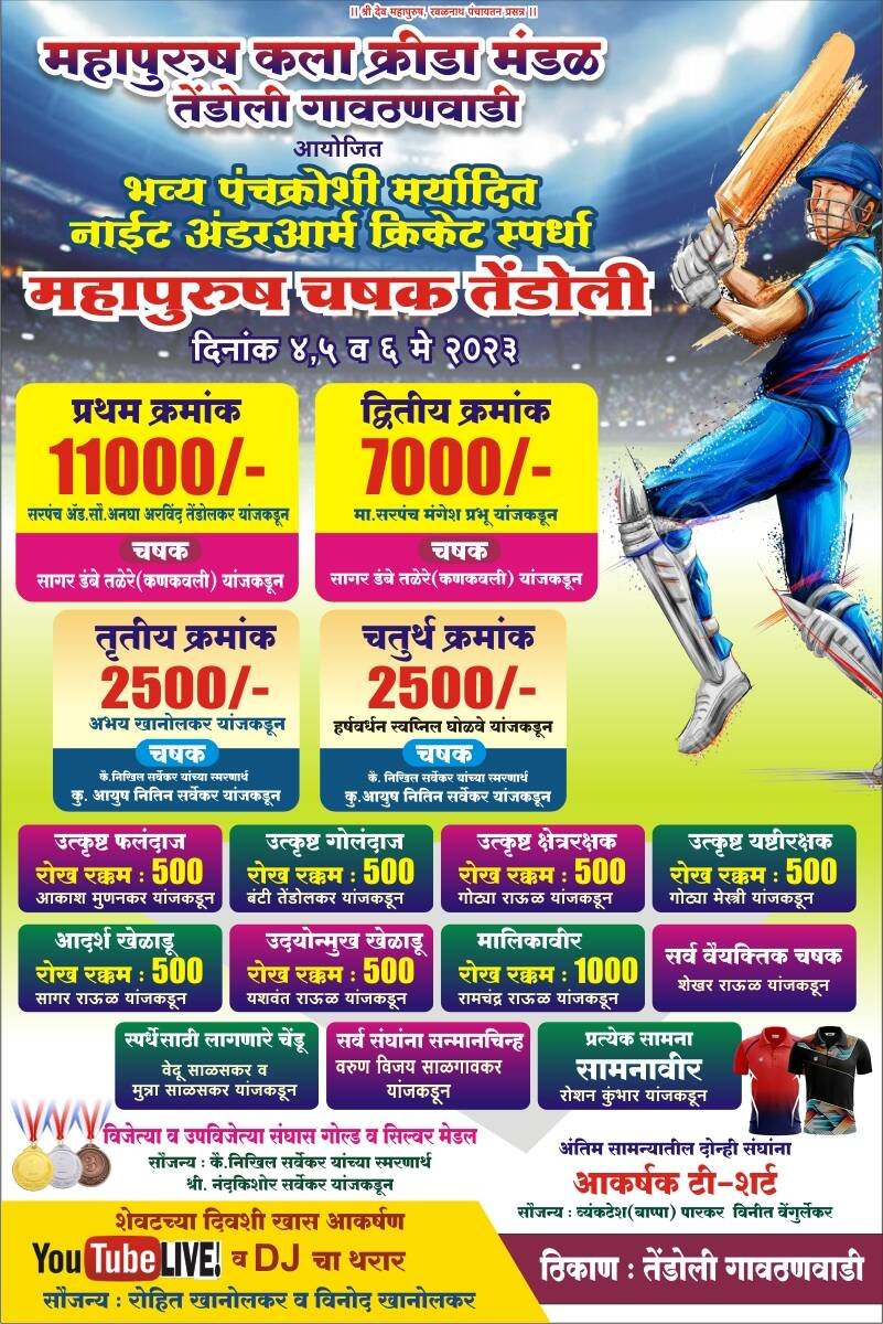 рдпрд╛ рд╕реНрдкрд░реНрдзреЗрд╕рд╛рдареА рд░реЛрд╣реАрдд рдЦрд╛рдиреЛрд▓рдХрд░ рд╡ рдорд┐рддреНрд░рдкрд░рд┐рд╡рд╛рд░ рд╣реЗ рдкреНрд░рдЪрдВрдб рдореЗрд╣рдирдд рдШреЗрдд рдЖрд╣реЗрдд. рдпрд╛ рд╕реНрдкрд░реНрдзреЗрдд рд╕рд╣рднрд╛рдЧреА рд╣реЛрдгрд╛рд▒реНрдпрд╛ рд╕рд░реНрд╡ рд╕рдВрдШрдорд╛рд▓рдХрд╛рдВрдирд╛, рдЦреЗрд│рд╛рдбреВрдВрдирд╛ рдорд╣рд╛рдкреБрд░реВрд╖ рдХрд▓рд╛ рдХреНрд░рд┐рдбрд╛ рдордВрдбрд│ рддреЗрдВрдбреЛрд▓реА рдЧрд╛рд╡рдардгрд╡рд╛рдбреАрдЪреНрдпрд╛ рд╡рддреАрдиреЗ рдордирдГрдкреВрд░реНрд╡рдХ рд╢реБрднреЗрдЪреНрдЫрд╛ рджрд┐рд▓реНрдпрд╛ рдЖрд╣реЗрдд рд╡ рддреНрдпрд╛рдЪ рдмрд░реЛрдмрд░ рдЦрд┐рд▓рд╛рдбреА рд╡реГрддреНрддреАрдиреЗ рдЦреЗрд│реВрди рдЖрдпреЛрдЬрди рдпрд╢рд╕реНрд╡реА рдХрд░рдгреНрдпрд╛рд╕ рдордВрдбрд│рд╛рд▓рд╛ рд╕рд╣рдХрд╛рд░реНрдп рдХрд░рд╛рд╡реЗ рдЕрд╕реЗ рдирдореНрд░ рдЖрд╡рд╛рд╣рди рд╣реА рдХрд░рдгреНрдпрд╛рдд рдЖрд▓реЗ рдЖрд╣реЗ.