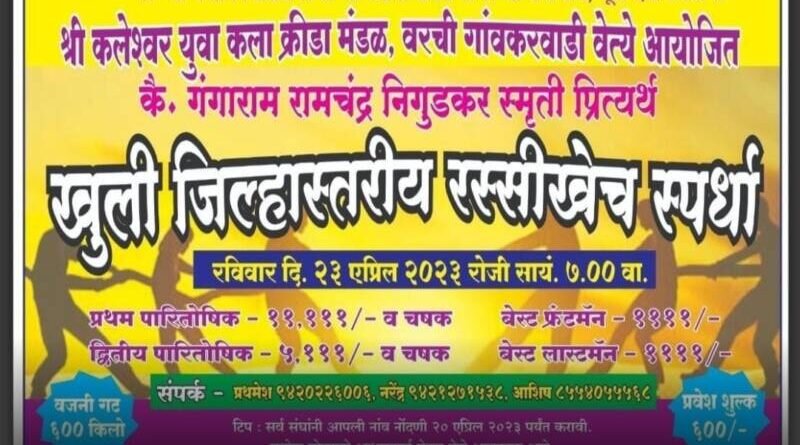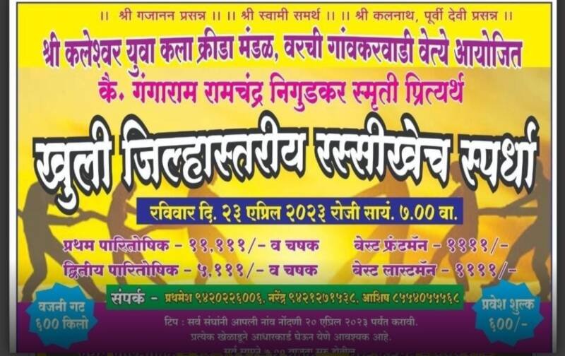 *ЁЯО┤рд╕рд╛рд╡рдВрддрд╡рд╛рдбреА, рджрд┐-реиреи :-* рд╢реНрд░реА рдХрд▓реЗрд╢реНрд╡рд░ рдпреБрд╡рд╛ рдХрд▓рд╛ рдХреНрд░реАрдбрд╛ рдордВрдбрд│ рд╡рд░рдЪреА рдЧрд╛рд╡рдХрд░рд╡рд╛рдбреА рд╡реЗрддреНрдпреЗ рдпрд╛рдВрдЪреНрдпрд╛рдХрдбреВрди рдХреИ. рдЧрдВрдЧрд╛рд░рд╛рдо рд░рд╛рдордЪрдВрджреНрд░ рдирд┐рдЧреБрдбрдХрд░ рдпрд╛рдВрдЪреНрдпрд╛ рд╕реНрдореГрддреА рдкреНрд░рд┐рддреНрдпрд░реНрде рдЦреБрд▓реНрдпрд╛ рдЬрд┐рд▓реНрд╣рд╛рд╕реНрддрд░реАрдп рд░рд╕реНрд╕реАрдЦреЗрдЪ рд╕реНрдкрд░реНрдзреЗрдЪреЗ рдЖрдпреЛрдЬрди рдЙрджреНрдпрд╛ рд░рд╡рд┐рд╡рд╛рд░ рд╕рд╛рдпрдВрдХрд╛рд│реА рд╕рд╛рдд рд╡рд╛рдЬрддрд╛ рдХрд░рдгреНрдпрд╛рдд рдЖрд▓реЗ рдЖрд╣реЗ.