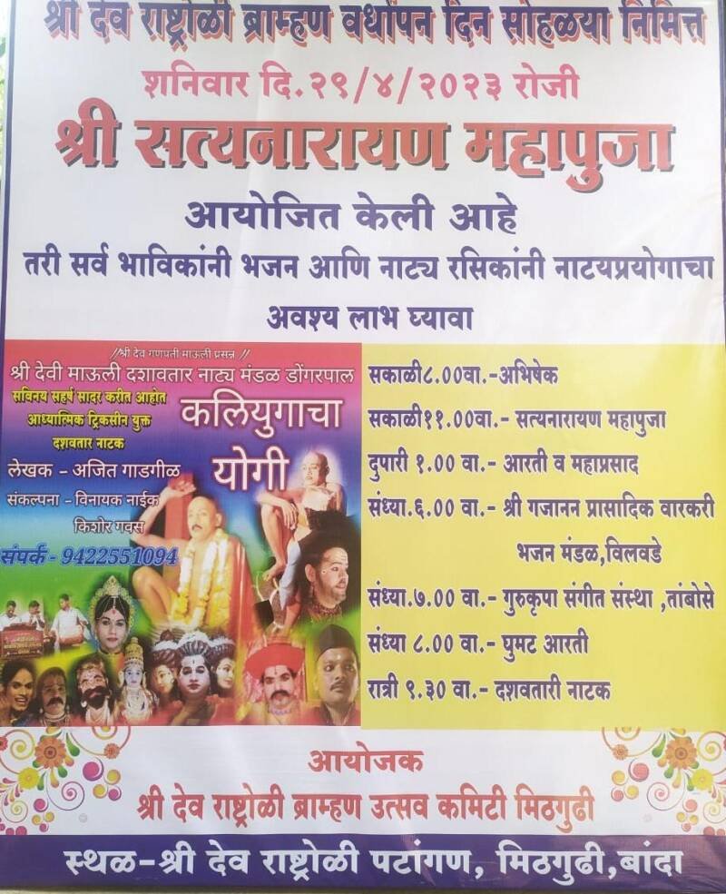 ЁЯЯе рдмрд╛рдВрджрд╛ рдорд┐рдардЧреБрдвреА рдпреЗрдереАрд▓ рд╢реНрд░реА рджреЗрд╡ рд░рд╛рд╖реНрдЯреНрд░реЛрд│реА рдмреНрд░рд╛рдореНрд╣рдг рджреЗрд╡рд╕реНрдерд╛рдирдЪрд╛ рд╡рд░реНрдзрд╛рдкрдирджрд┐рди рд╢рдирд┐рд╡рд╛рд░ рджрд┐.реиреп рд░реЛрдЬреА рд╣реЛрдгрд╛рд░ рд╕рд╛рдЬрд░рд╛..