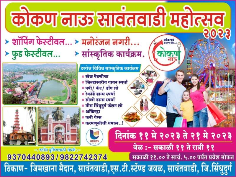 рдХреЛрдХрдг рдирд╛рдК рдЪреЕрдиреЗрд▓ рдЪреНрдпрд╛ рд╡рддреАрдиреЗ “рдХреЛрдХрдг рдирд╛рдК рд╕рд╛рд╡рдВрддрд╡рд╛рдбреА рдорд╣реЛрддреНрд╕рд╡ 2023” рдЪреЗ рд╢рд╛рдирджрд╛рд░ рдЖрдпреЛрдЬрди рдХрд░рдгреНрдпрд╛рдд рдЖрд▓ рдЖрд╣реЗ.рдпрд╛ рдорд╣реЛрддреНрд╕рд╡рд╛рдд рдорд╛рд▓рд╡рдгреА рдЬреЗрд╡рдгрд╛рдЪреНрдпрд╛ рдЦрд╛рджреНрдпрдкрджрд╛рд░реНрдерд╛рдВрд╕рд╣рд┐рдд рдЖрдВрддрд░рд░рд╛рд╖реНрдЯреНрд░реАрдп рдЦрд╛рджреНрдп рдорд╣реЛрддреНрд╕рд╡ рдЖрдпреЛрдЬрд┐рдд рдХрд░рдгреНрдпрд╛рдд рдЖрд▓реЗрд▓рд╛ рдЖрд╣реЗ. рддрд╕реЗрдЪ рд╡рд┐рд╡рд┐рдз рдЧреГрд╣рдкрдпреЛрдЧреА рд╡рд╕реНрддреВрдВрдЪреЗ рд╕реНрдЯреЛрдЕрд░реНрд╕,рддрд╕реЗрдЪ рд▓рд╣рд╛рди рдореБрд▓рд╛рдВрд╕рд╛рдареА рдордиреЛрд░рдВрдЬрди рдЬрддреНрд░реЗрдЪреЗ рдЖрдпреЛрдЬрди рдХрд░рдгреНрдпрд╛рдд рдЖрд▓реЗ рдЖрд╣реЗ.рдпрд╛ рдард┐рдХрд╛рдгреА рднрд╡реНрдп рдЕрд╕реЗ рдЖрдХрд╛рд╢ рдЭреЛрдкрд╛рд│реЗ,рдЖрдХрд╛рд╢ рдкрд╛рд│рдгреА,рдЯреЛрд░рд╛ рдЯреЛрд░рд╛, рдмреНрд░реЗрдХ рдбрд╛рдиреНрд╕ рддреНрдпрд╛рдмрд░реЛрдмрд░рдЪ рд▓рд╣рд╛рди рдореБрд▓рд╛рдВрд╕рд╛рдареА рдЦреЗрд│рдгреНрдпрд╛рд╕рд╛рдареА рд╡рд┐рд╡рд┐рдз рдкреНрд░рдХрд╛рд░рдЪреЗ рд╕реНрдЯреЙрд▓реНрд╕ рдЙрднрд╛рд░рдгреНрдпрд╛рдд рдЖрд▓реЗ рдЖрд╣реЗрдд.рд╕рд╛рд╡рдВрддрд╡рд╛рдбреАрдХрд░рд╛рдВрд╕рд╛рдареА рд╣реА рдореЛрдареА рдореЗрдЬрд╡рд╛рдиреА рдард░рдгрд╛рд░ рдЕрд╕реВрди рдЧреЗрд▓реА рдХрд┐рддреНрдпреЗрдХ рд╡рд░реНрд╖ рд╕рд╛рд╡рдВрддрд╡рд╛рдбреАрдд рдкрд░реНрдпрдЯрди рдорд╣реЛрддреНрд╕рд╡ рдЭрд╛рд▓рд╛ рдирд╕рд▓реНрдпрд╛рдиреЗ рдпрд╛ рдорд╣реЛрддреНрд╕рд╡рд╛рдЪреА рдЙрддреНрдХрдВрдард╛ рд╕рд╛рд╡рдВрддрд╡рд╛рдбреА рд╢рд╣рд░рд╛рдд рд╢рд┐рдЧреЗрд▓рд╛ рдкреЛрд╣реЛрдЪрд▓реА рдЖрд╣реЗ.11 рдореЗ рддреЗ 21 рдореЗ рдЕрд╕реЗ 11 рджрд┐рд╡рд╕ рд╣рд╛ рдорд╣реЛрддреНрд╕рд╡ рд╕реБрд░реБ рдЕрд╕рдгрд╛рд░ рдЕрд╕реВрди рдпрд╛рдВ рдорд╣реЛрддреНрд╕рд╡рд╛рдЪреНрдпрд╛ рджрд░рдореНрдпрд╛рди рд╡рд┐рд╡рд┐рдз рд╕рд╛рдВрд╕реНрдХреГрддрд┐рдХ рдХрд╛рд░реНрдпрдХреНрд░рдо рдЖрдпреЛрдЬрд┐рдд рдХрд░рдгреНрдпрд╛рдд рдЖрд▓реЗ рдЖрд╣реЗрдд.