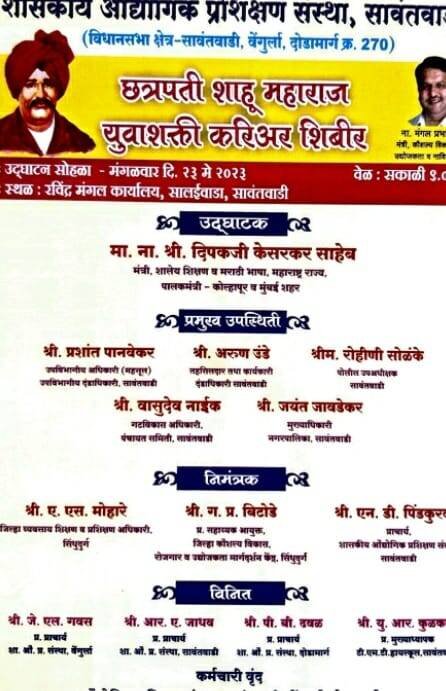 ЁЯЯе рд╕рд╛рд╡рдВрддрд╡рд╛рдбреАрдд рдорд╣рд╛рд░рд╛рд╖реНрдЯреНрд░ рд╢рд╛рд╕рдирд╛рдЪреНрдпрд╛ рдорд╛рдзреНрдпрдорд╛рддреВрди рдЫрддреНрд░рдкрддреА рд╢рд╛рд╣реВ рдорд╣рд╛рд░рд╛рдЬ рдпреБрд╡рд╛рд╢рдХреНрддреА рдХрд░рд┐рдЕрд░ рд╢рд┐рдмреАрд░рд╛рдЪреЗ рдЖрдпреЛрдЬрди..