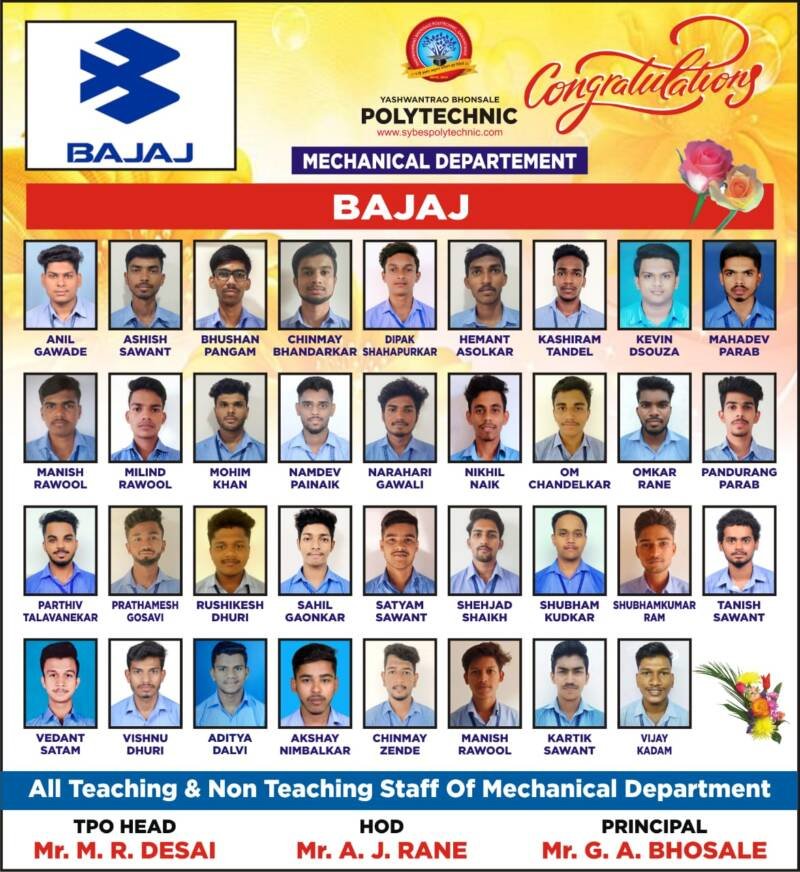 ЁЯЯе рднреЛрд╕рд▓реЗ рдкреЙрд▓рд┐рдЯреЗрдХреНрдирд┐рдХрдЪреНрдпрд╛ 35 рд╡рд┐рджреНрдпрд╛рд░реНрдереНрдпрд╛рдВрдЪреА рдмрдЬрд╛рдЬ рдСрдЯреЛрдордзреНрдпреЗ (Bajaj Auto) рдпрд╢рд╕реНрд╡реА рдирд┐рд╡рдб..