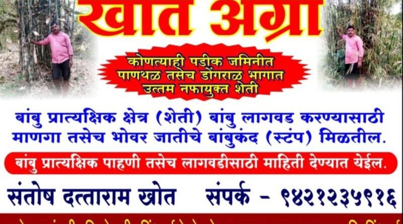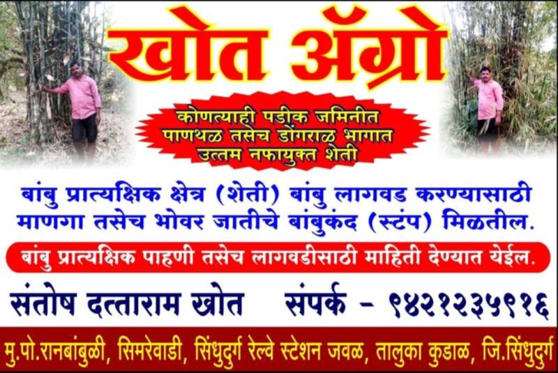 *ЁЯО┤рд╕рд┐рдВрдзреБрджреБрд░реНрдЧ, рджрд┐-режрез:-* рджрд▓рджрд▓реАрдЪреА рдЬрд╛рдЧрд╛ рдирд╛рдкреАрдХ рд╕рдордЬрд▓реА рдЬрд╛рддреЗ рдорд╛рддреНрд░ рдХреБрдбрд╛рд│ рддрд╛рд▓реБрдХреНрдпрд╛рддреАрд▓ рд░рд╛рдирдмрд╛рдВрдмреБрд│реА рдпреЗрдереАрд▓ рд╕рдВрддреЛрд╖ рджрддреНрддрд╛рд░рд╛рдо рдЦреЛрдд рдпрд╛ рд╢реЗрддрдХрд▒реНрдпрд╛рдиреЗ рддреЗрдереАрд▓ резрел рдЧреБрдВрдареЗ рдкрд╛рдгрдерд│ рдХреНрд╖реЗрддреНрд░рд╛рдд рдмрд╛рдВрдмреВрдЪреНрдпрд╛ рд▓рд╛рдЧрд╡рдбреАрдЪрд╛ рдпрд╢рд╕реНрд╡реА рдкреНрд░рдпреЛрдЧ рдХрд░реВрди рджрд╛рдЦрд╡рд▓рд╛ рдЖрд╣реЗ. рдпрдВрджрд╛рдЪреНрдпрд╛ рдЬрд╛рдиреЗрд╡рд╛рд░реАрдордзреНрдпреЗ рдпрд╛ рдмрд╛рдВрдмреВ рд▓рд╛рдЧрд╡рдбреАрд▓рд╛ рдПрдХ рд╡рд░реНрд╖ рдкреВрд░реНрдг рд╣реЛрдд рдЕрд╕реВрди рдЖрдгрдЦреА рддреАрди рд╡рд░реНрд╖рд╛рдВрдиреА рдпрд╛ рдмрд╛рдВрдмреВ рдкрд╛рд╕реВрди рджреЛрди рд▓рд╛рдЦрд╛рдЪреЗ рдЙрддреНрдкрдиреНрди рдЕрдкреЗрдХреНрд╖рд┐рдд рдЖрд╣реЗ. рдкрд╛рдгрдерд│ рдЬрд╛рдЧрд╛ рдкрд░реНрдпрд╛рд╡рд░рдг рджреГрд╖реНрдЯреНрдпрд╛ рд╕рдВрд╡реЗрджрдирд╢реАрд▓ рдЖрдгрд┐ рдорд╣рддреНрддреНрд╡рд╛рдЪреНрдпрд╛ рдЕрд╕рд▓реНрдпрд╛ рддрд░реА рдпрд╛рдд рдЬрд▓реЛрдп рд╡рдирд╕реНрдкрддреА рдЦреЗрд░реАрдЬ рдЕрдиреНрдп рдХреБрдард▓реНрдпрд╛рд╣реА рд╡рдирд╕реНрдкрддреАрдЪреА рд▓рд╛рдЧрд╡рдб рдпрд╢рд╕реНрд╡реА рд╣реЛрдд рдирд╛рд╣реА. рддреНрдпрд╛рдореБрд│реЗ рдЬрд┐рд▓реНрд╣реНрдпрд╛рддреАрд▓ рдЕрдиреЗрдХ рдкрд╛рдгрдерд│ рдЬрд╛рдЧрд╛ рд╡рд░реНрд╖рд╛рдиреБрд╡рд░реНрд╖ рдкрдбреАрдХ рд░рд╛рд╣рд┐рд▓реЗ рдЖрд╣реЗрдд. рдорд╛рддреНрд░ рдкрдбреАрдХ рдЕрд╕рд▓реЗрд▓реА рдкрд╛рдгрдерд│ рдЬрд╛рдЧрд╛ рджреЗрдЦреАрд▓ рд▓рд╛рдЧрд╡рдбреАрдЦрд╛рд▓реА рдЖрдгрддрд╛ рдпреЗрдК рд╢рдХрддреЗ рд╣реЗ рд░рд╛рдирдмрд╛рдВрдмреБрд│реА рдпреЗрдереАрд▓ рд╕рдВрддреЛрд╖ рдЦреЛрдд рдпрд╛рдВрдиреА рджрд╛рдЦрд╡реВрди рджрд┐рд▓реЗ рдЖрд╣реЗ. рджрд▓рджрд▓реАрдЪреНрдпрд╛ рдкреНрд░рджреЗрд╢рд╛рдд рдмрд╛рдВрдмреВ рд▓рд╛рдЧрд╡рдб рдпрд╢рд╕реНрд╡реА рд╣реЛрдд рдирд╛рд╣реА рдорд╛рддреНрд░ рдУрд▓рд┐рддрд╛рдЦрд╛рд▓реА рдмрд╛рдВрдмреВ рдХреЛрд░рдбрд╛рд╣реВ рдХреНрд╖реЗрддреНрд░рд╛рдкреЗрдХреНрд╖рд╛ рджреАрдбрдкрдЯ рдЙрддреНрдкрдиреНрди рджреЗрддреЛ рдЖрдгрд┐ рд╕рд░реНрд╡ рдмрд╛рдВрдмреВрдВрдЪреНрдпрд╛ рдХреЛрдВрдмрд╛рдВрдЪреЗ рдмрд╛рдВрдмреВрдд рд░реВрдкрд╛рдВрддрд░ рд╣реЛрддреЗ .рд╣реА рдмрд╛рдм рд╣реЗрд░реВрди рд╕рдВрддреЛрд╖ рдЦреЛрдд рдпрд╛рдВрдиреА рдкрд╛рдгрдерд│ рдЕрд╕рд▓реЗрд▓реНрдпрд╛ рдХреНрд╖реЗрддреНрд░рд╛рддреАрд▓ рдкрдВрдзрд░рд╛ рдЧреБрдВрдареЗ рдЬрд╛рдЧреЗрдд рдорд╛рдбрд╛рд▓рд╛ рдЕрд│реА рдХрд░рддрд╛рдд рдЕрд╕реЗ рдорд╛рддреАрдЪреЗ рднрд░рд╛рд╡ рдЯрд╛рдХреВрди рдЧреЛрд▓ рдЙрдВрдЪрд╡рдЯреЗ рддрдпрд╛рд░ рдХреЗрд▓реЗ рдпрд╛ рднрд░рд╛рд╡ рдЯрд╛рдХрд▓реЗрд▓реЗ рдЬрд╛рдЧреЗрдордзреНрдпреЗ рдорд╛рдгрдЧрд╛ рдмрд╛рдВрдмреВрдЪреНрдпрд╛ резрежреж рдХрдВрджрд╛рдВрдЪреА рд▓рд╛рдЧрд╡рдб рдЬрд╛рдиреЗрд╡рд╛рд░реА реирежреирез рдордзреНрдпреЗ рдХреЗрд▓реА рд╡рд░реНрд╖рднрд░рд╛рдд резрел рдлреВрдЯ рдЙрдВрдЪреАрдкрд░реНрдпрдВрдд рд╣реЗ рдХрдВрдж рд╡рд╛рдврд▓реЗ рдЖрд╣реЗрдд . рдЖрдгрдЦреА рей рд╡рд░реНрд╖рд╛рдирдВрддрд