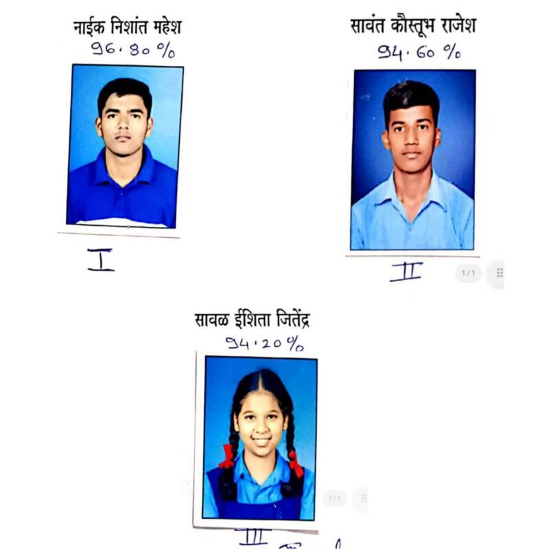 рдкреНрд░рдердо рдирд┐рд╢рд╛рдВрдд рдорд╣реЗрд╢ рдирд╛рдИрдХ (репрем.реорежрдЯрдХреНрдХреЗ), рджреНрд╡рд┐рддреАрдп рдХрд╛реИрд╕реНрддреБрдн рд░рд╛рдЬреЗрд╢ рд╕рд╛рд╡рдВрдд (репрек.ремреж), рддреГрддреАрдп рдИрд╢рд┐рддрд╛ рдЬрд┐рддреЗрдВрджреНрд░ рд╕рд╛рд╡рд│ (репрек.реиреж) рд╕рд░реНрд╡ рдпрд╢рд╕реНрд╡реА рд╡рд┐рджреНрдпрд╛рд░реНрдереНрдпрд╛рдВрдЪреЗ рд╕рдВрд╕реНрдереЗрдЪреЗ рдЕрдзреНрдпрдХреНрд╖рд╛ рд╕рд┐рдорд╛ рддреЛрд░рд╕рдХрд░, рдХрд╛рд░реНрдпрд╛рдзреНрдпрдХреНрд╖ рдбрд╛рдБ. рдорд┐рдВрд▓рд┐рдВрдж рддреЛрд░рд╕рдХрд░, рд╕рдЪрд┐рд╡ рдХрд▓реНрдкрдирд╛ рддреЛрд░рд╕рдХрд░,рдЦрдЬрд┐рдирджрд╛рд░ рд╡реИрднрд╡ рдирд╛рдИрдХ,рд╕рдВрд╕реНрдерд╛ рд╕рдордиреНрд╡рдп рд╕рдорд┐рддреА рд╕рдЪрд┐рд╡ рд░рд╢реНрдореА рддреЛрд░рд╕рдХрд░, рдкреНрд░рд╢рд╛рд╕рдХрд┐рдп рдЕрдзрд┐рдХрд╛рд░реА рдордХрд░рдВрдж рддреЛрд░рд╕рдХрд░,рд╕рд╣ рд╕рдЪрд┐рд╡ рд╕рдордиреНрд╡рдп рд╕рдорд┐рддреА рдирдВрджрдХреБрдорд╛рд░ рдирд╛рдИрдХ, рд╕рд░реНрд╡ рдХрд╛рд░реНрдпрдХрд╛рд░рдгреА рд╕рджрд╕реНрдп, рдореБрдЦреНрдпрд╛рдзреНрдпрд╛рдкрд┐рдХрд╛ рдПрдо.рдПрдо.рд╕рд╛рд╡рдВрдд рдпрд╛рдВрдиреА рдЕрднрд┐рдирдВрджрди рдХреЗрд▓реЗ рдЖрд╣реЗ.