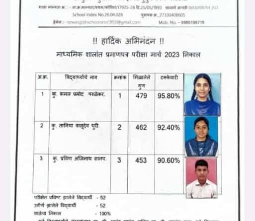 🟥 न्यू इंग्लिश स्कूल ओरोस कनिष्ठ महाविद्यालयाचा एसएससी परीक्षेचा निकाल १०० टक्के