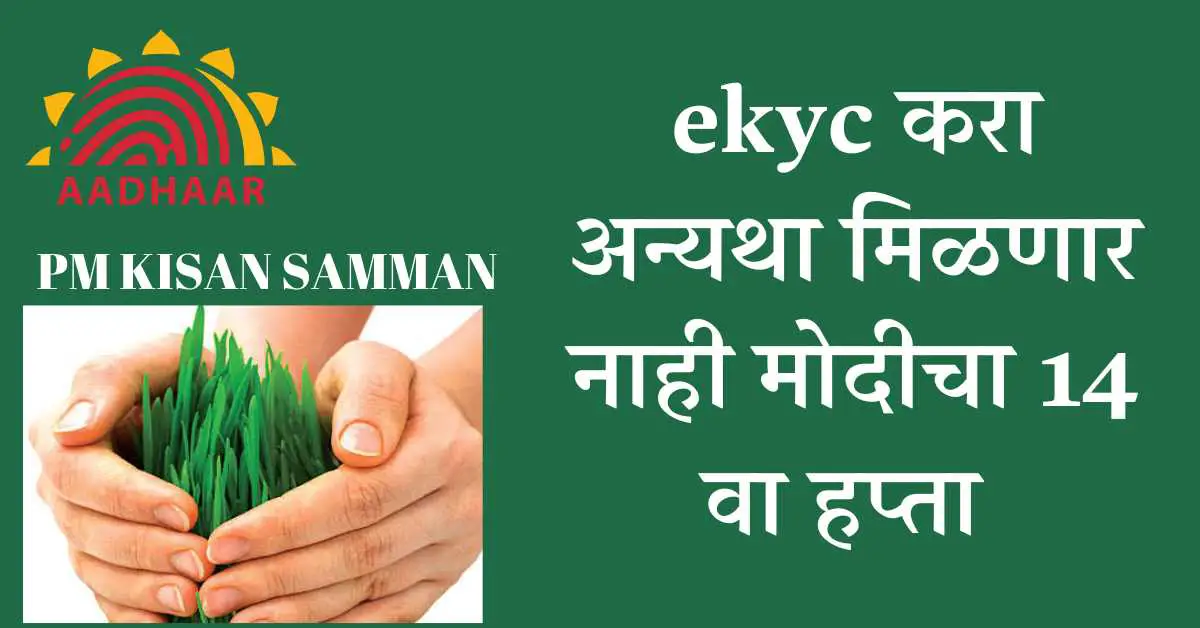 рдИ-рдХреЗрд╡рд╛рдпрд╕реАрд╕рд╛рдареА рдЬрд╡рд│реАрд▓ рд╕рд╛рдорд╛рдИрдХ рд╕реБрд╡рд┐рдзрд╛ рдХреЗрдВрджреНрд░рд╛рдордзреНрдпреЗ рдЬрд╛рдКрди рдИ-рдХреЗрд╡рд╛рдпрд╕реА рдкреНрд░рдорд╛рдгреАрдХрд░рдг рдХрд░реВрди рдШреНрдпрд╛рд╡реЗ рдХрд┐рдВрд╡рд╛ рдирд╡реАрди рдЖрд▓реЗрд▓реЗ рдлреЗрд╕ рд░реЗрдХреЙрдЧреНрдирд┐рд╢рди рдЕреЕрдкреНрд▓рд┐рдХреЗрд╢рди рдЖрдкрд▓реНрдпрд╛ рдореЛрдмрд╛рдИрд▓рдордзреНрдпреЗ рдбрд╛рдКрдирд▓реЛрдб рдХрд░реВрди рдИ-рдХреЗрд╡рд╛рдпрд╕реА рдХрд░рддрд╛ рдпреЗрддреЗ. рдпрд╛рд╢рд┐рд╡рд╛рдп рдкреА. рдПрдо. рдХрд┐рд╕рд╛рдирдЪреНрдпрд╛ рдЕрдзрд┐рдХреГрдд рдкреЛрд░реНрдЯрд▓рд╡рд░рд╣реА ‘рдлрд╛рд░реНрдорд░ рдХреЙрд░реНрдирд░’рд╡рд░ рдУрдЯреАрдкреА рдЖрдзрд╛рд░рд┐рдд рд╕реБрд╡рд┐рдзреЗрдЪрд╛ рд╡рд╛рдкрд░ рдХрд░реВрди рд╢реЗрддрдХрд░реА рдИ- рдХреЗрд╡рд╛рдпрд╕реА рдХрд░реВ рд╢рдХрддрд╛рдд. рджреБрд╕рд░реА рдмрд╛рдм рдореНрд╣рдгрдЬреЗ рдмрдБрдХ рдЦрд╛рддреЗ рдЖрдзрд╛рд░ рд╕рдВрд▓рдЧреНрди рдХрд░рдгреНрдпрд╛рд╕рд╛рдареА рддреНрдпрд╛ рдмрдБрдХреЗрдд рд╢реЗрддрдХрд▒реНрдпрд╛рдВрдиреА рдЦрд╛рддреЗ рдЖрдзрд╛рд░ рд▓рд┐рдВрдХ рдХрд░рд╛рд╡реЗ. рдЕрдерд╡рд╛ рдкреЛрд╕реНрдЯрдорд╛рд╕реНрддрд░рдорд╛рд░реНрдлрдд рдЗрдВрдбрд┐рдпрд╛ рдкреЛрд╕реНрдЯ рдкреЗрдореЗрдВрдЯ рдмрдБрдХреЗрдд рдЦрд╛рддреЗ рдЙрдШрдбрдгреЗ рдЖрд╡рд╢реНрдпрдХ рдЖрд╣реЗ. рдЖрдкрд▓реНрдпрд╛ рдЧрд╛рд╡рд╛рддреАрд▓ рдХреГрд╖реА рд╕рд╣рд╛рдпрдХрд╛рдВрдЪреА рдпрд╛ рдХрд╛рдорд╛рд╕рд╛рдареА рд╢реЗрддрдХрд▒реНрдпрд╛рдВрдиреА рдорджрдд рдШреНрдпрд╛рд╡реА, рдЕрд╕реЗ рдЖрд╡рд╛рд╣рди рдмрдирдХрд░ рдпрд╛рдВрдиреА рдХреЗрд▓реЗ рдЖрд╣реЗ.