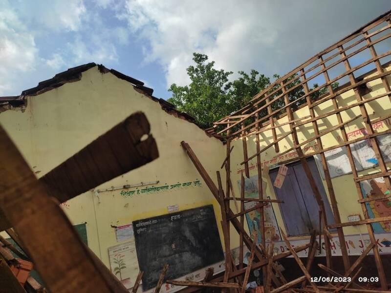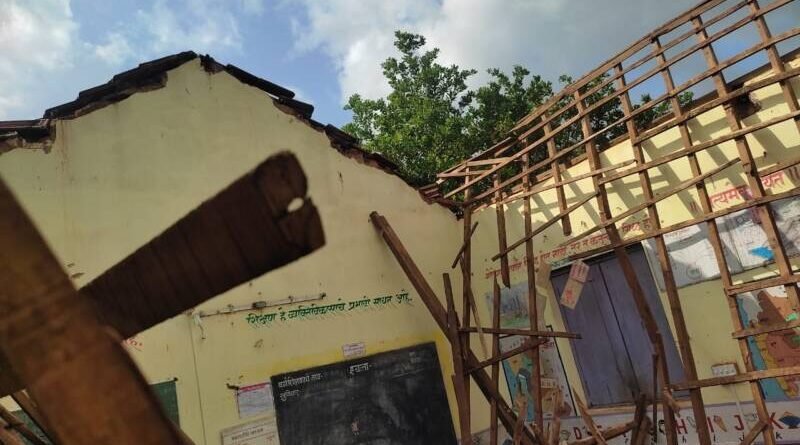 🟥 मडूरेत जि.प. प्राथमिक शाळेचे छप्पर कोसळले..