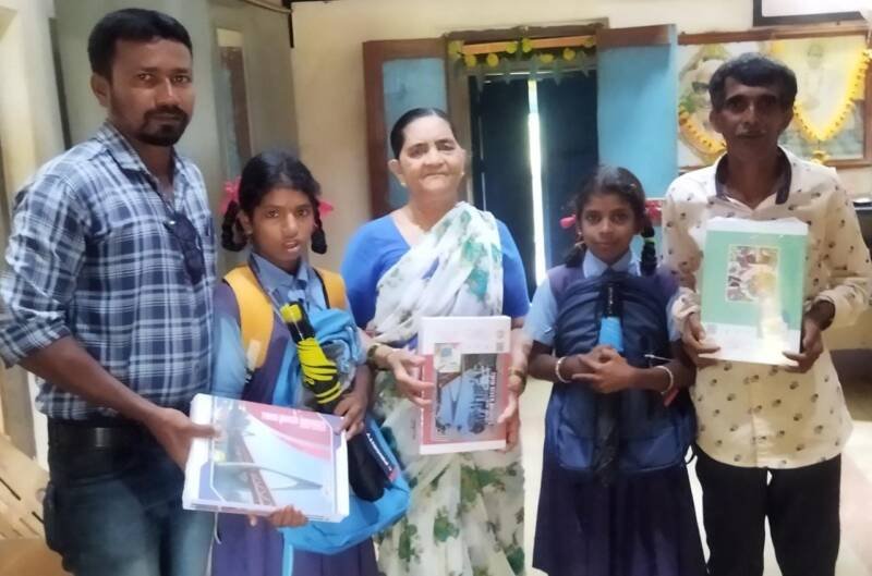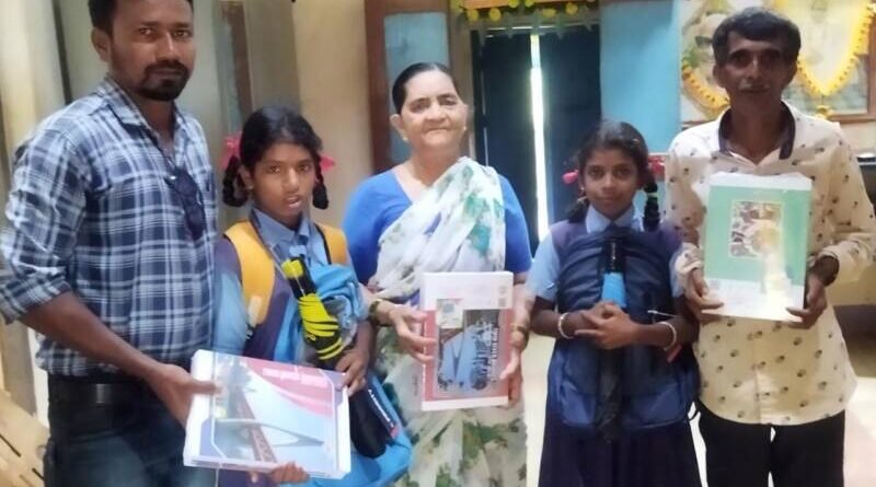 मडुरा तिठा येथे कै.डॉ.शंकर नाईक यांच्या स्मरणार्थ गरजू विद्यार्थ्यांना वह्या,छत्री, स्कुल बेग, कंपास,चप्पल आदी शैक्षणिक साहित्य मोफत उपलब्ध करुन दिले.यावेळी श्रीमती नाईक बोलत होत्या. पाडलोस सोसायटी व्हाईस चेअरमन विश्वनाथ नाईक, सामाजिक कार्यकर्ते भास्कर नाईक, विद्यार्थिनी वेदिका केणी, अनुष्का नाईक उपस्थित होत्या.