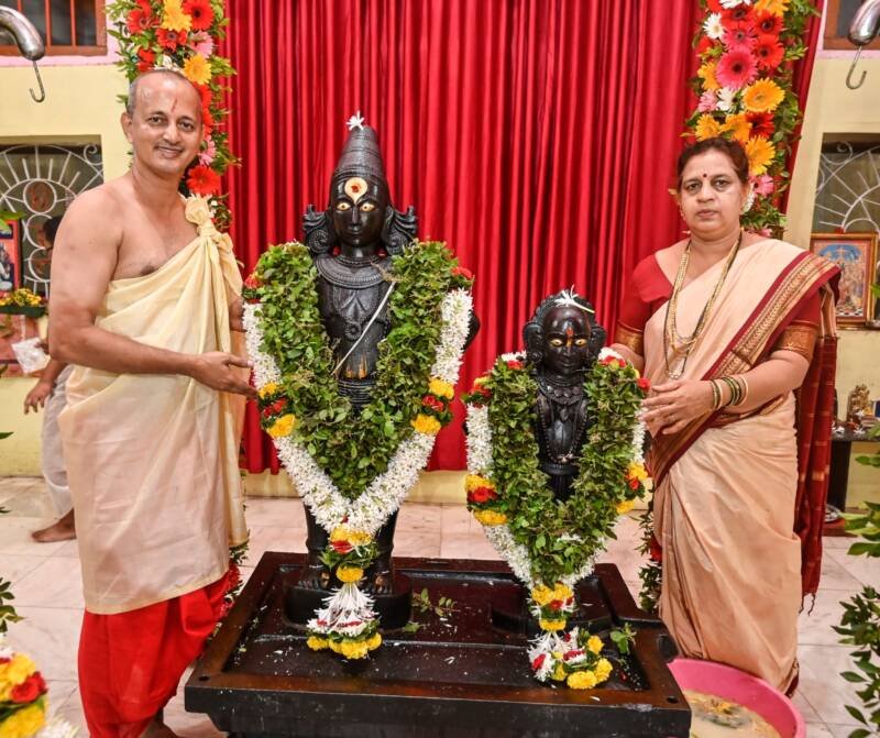 सावंतवाडी : आषाढी एकादशी निमित्त कोकणातील प्रतिपंढरपूर असणार सावंतवाडीतील विठ्ठल-रखुमाई मंदिर हरीनामानं दुमदुमून गेल. पहाटेचा काकडा, महाआरती, दुग्धाभिषेक स्नानान विठ्ठल भक्तांच्या डोळ्याचं पारण फिटलं. आषाढी एकादशीच्या महापुजेचे मानकरी डॉ प्रवीण मसुरकर व प्राजक्ता मसुरकर या दांपत्यांच्या हस्ते विठ्ठल-रखुमाईची पुजा पार पडली. शहरासह तालुक्यातील विठ्ठल भक्तांनी विठूरायाच्या दर्शनासाठी पहाटेपासूनच गर्दी केली होती.