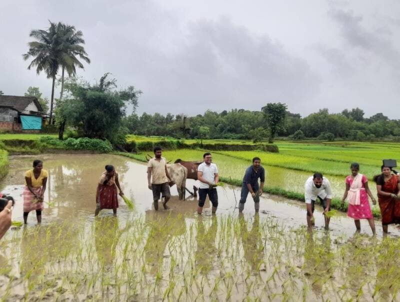рд╕рд╛рд╡рдВрддрд╡рд╛рдбреА рддрд╣рд╕реАрд▓рджрд╛рд░ рд╢реНрд░реАрдзрд░ рдкрд╛рдЯреАрд▓ рд╣реЗ рдЖрдЬ рд╕рдХрд╛рд│реА рд╢реЗрддрдХрд░реА рд╡рд┐рд╢реНрд╡рдирд╛рде рдирд╛рдИрдХ рдпрд╛рдВрдЪреНрдпрд╛ рд╢реЗрддрд╛рдд рдЖрд▓реЗ.рдХреЗрд╡рд│ рдФрдкрдЪрд╛рд░рд┐рдХрддрд╛ рди рдХрд░рддрд╛ рддреЗ рдереЗрдЯ рдЪрд┐рдЦрд▓рд╛рдд рдЙрддрд░рд▓реЗ.рдмреИрд▓ рдЬреЛрдбреАрдЪреЗ рдФрдд рд╣рд╛рдХрдгреНрдпрд╛ рдмрд░реЛрдмрд░рдЪ рдкреНрд░рддреНрдпрдХреНрд╖ рднрд╛рдд рд▓рд╛рд╡рдгреАрддрд╣реА рд╕рд╣рднрд╛рдЧ рдШреЗрддрд▓рд╛. рдпрд╛рд╡реЗрд│реА рддреНрдпрд╛рдВрдиреА рдЧреНрд░рд╛рдорд╕реНрдерд╛рдВрдирд╛ рд╢реЗрддреАрдЪреЗ рдорд╣рддреНрд╡ рд╕рдордЬрд╛рд╡реВрди рд╕рд╛рдВрдЧрд┐рддрд▓реЗ.
